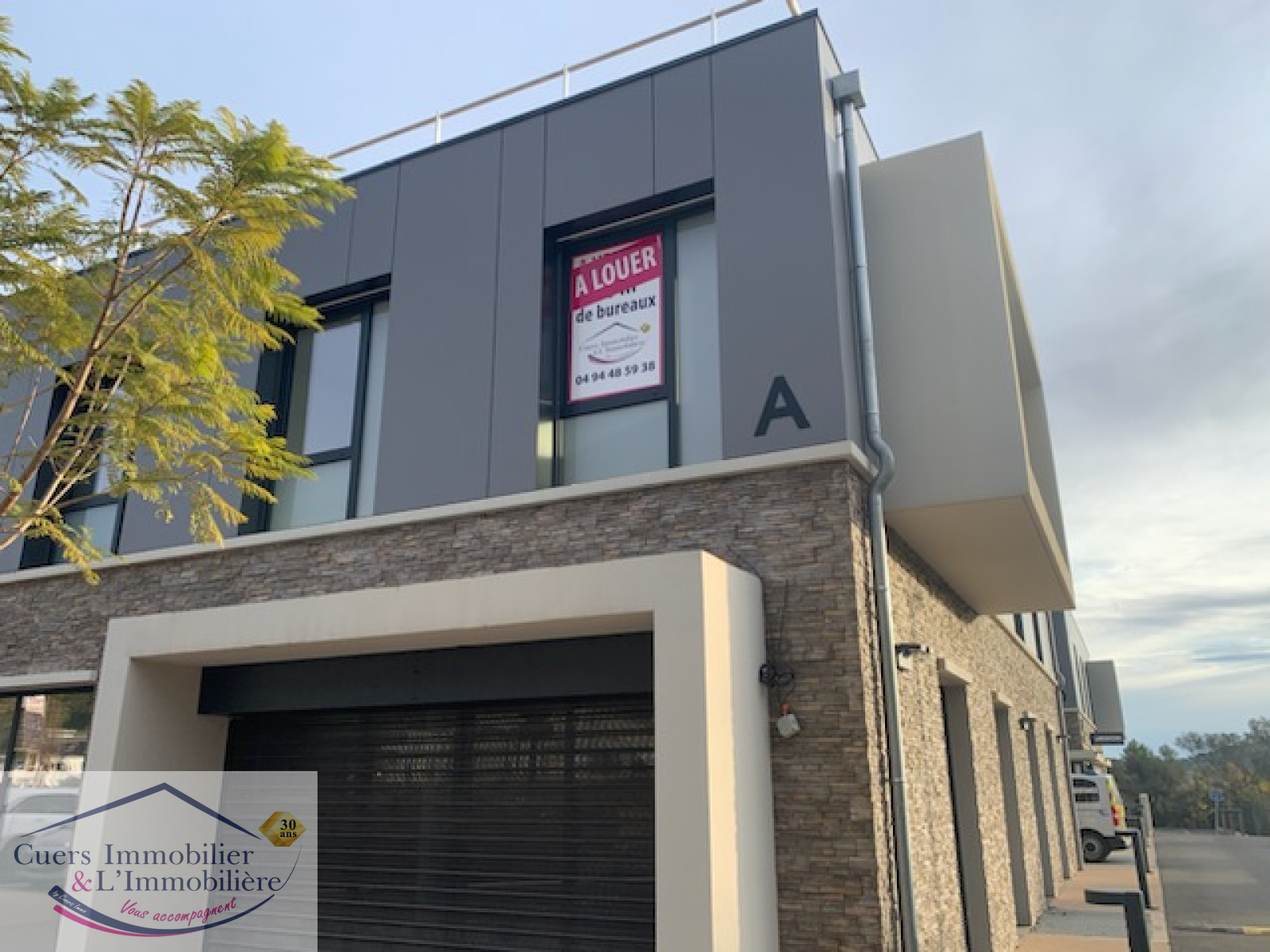 Cuers (83390)Spacieux et lumineux local neuf de 89m², composé de 4 bureaux et d'une pièce pouvant faire office de salle de pose et de toilettes aux normes PMR avec ascenseur, entièrement climatisé, disposant d'un accès autoroutier immédiat, d'une belle visibilité et de nombreuses places de parkings gratuites, dont 3 places de parkings privatives sécurisées en sous-sol.