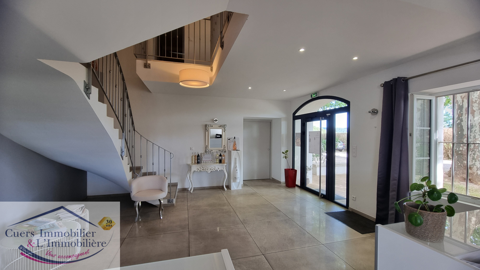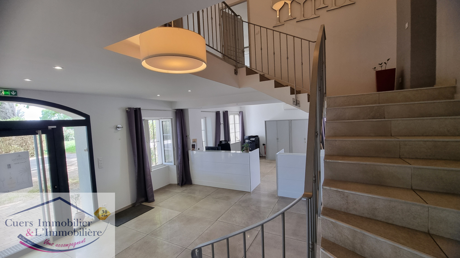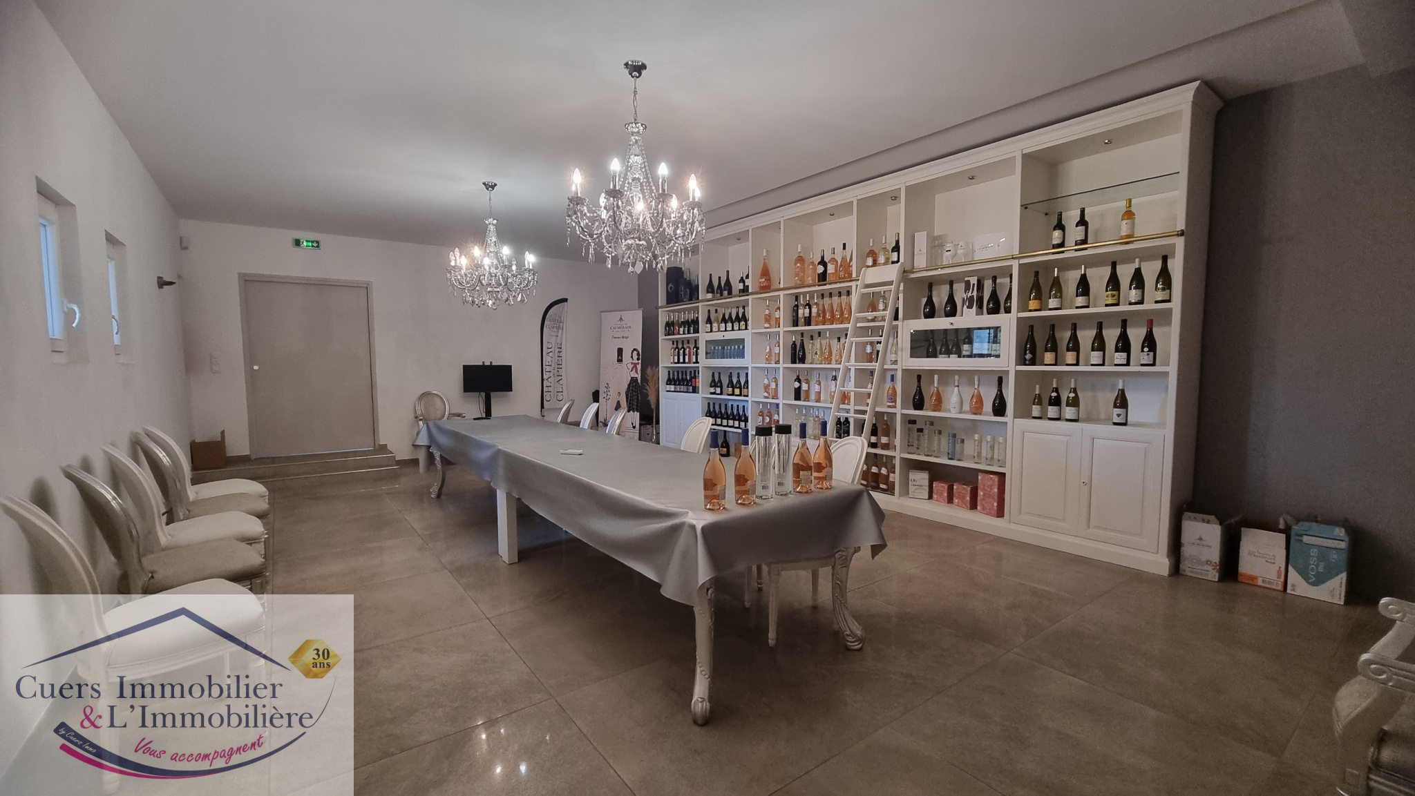 La confortable bâtisse principale, élevée d'un étage sur rez-de-chaussée, entièrement rénovée en 2017, répond parfaitement aux besoins de l'activité commerciale présente au travers d'un vaste accueil, une salle de dégustation, 4 bureaux et les espaces nécessaires à l'exploitation. Climatisation réversible, double vitrage, volets ALU.