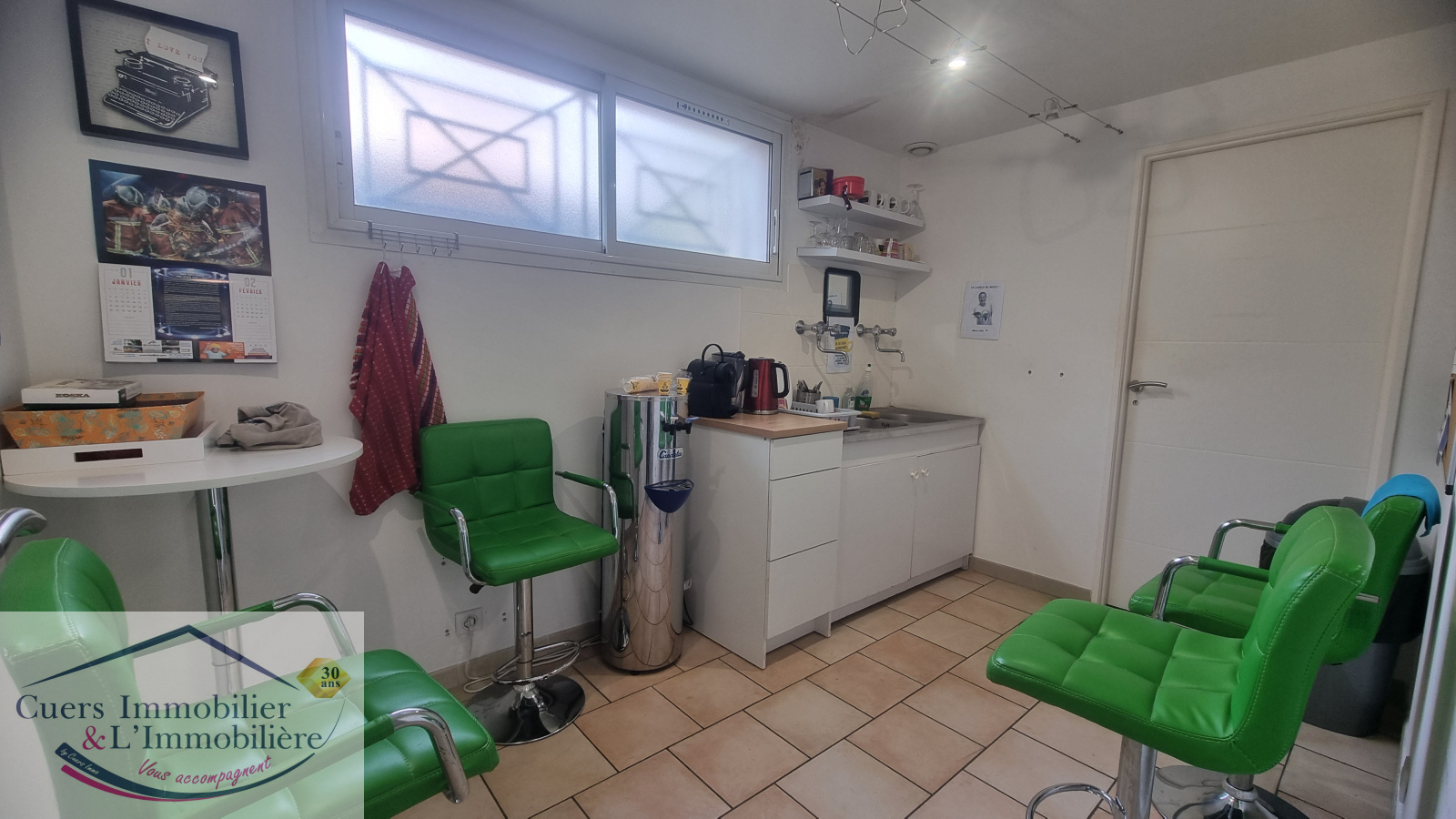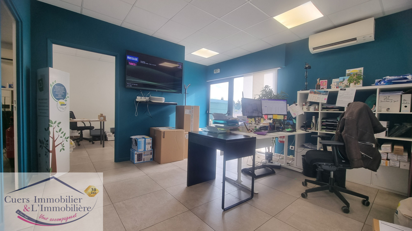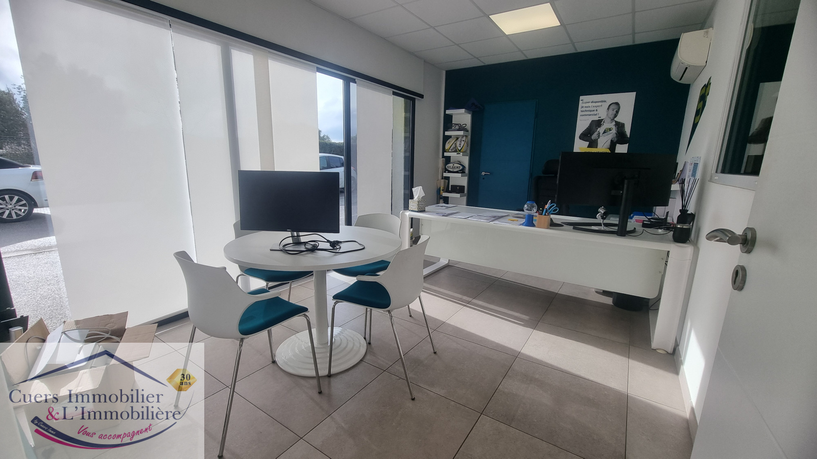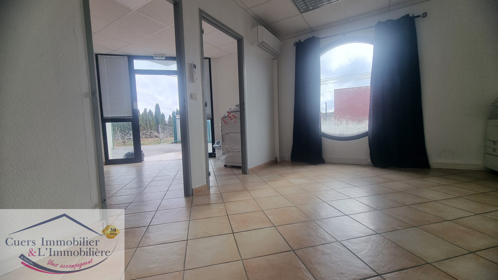 -un 1er espace d'environ 117 m², de plain-pied, composé de 5 bureaux + un accueil + une tisanerie et wc;