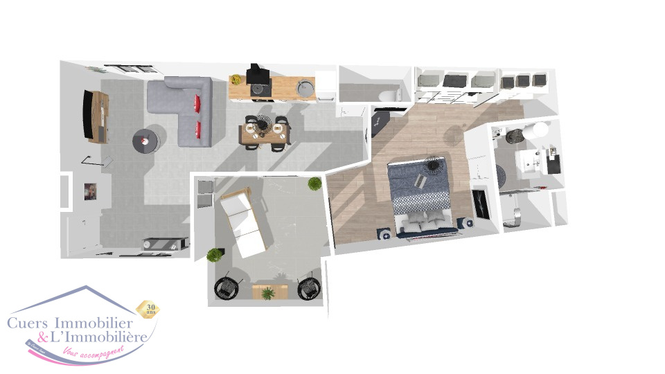 Prestations haut de gamme pour cet appartement de type 2 d'environ 46 m² situé au 1er étage d'une petite copropriété.