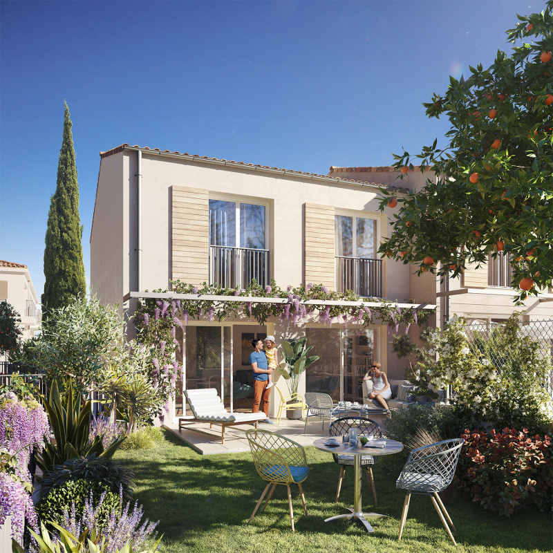 LA CRAU, à 200 mètres du centre-ville, au calme d'une impasse, villa neuve d'environ 93 m² sur un terrain d'environ 281 m².
