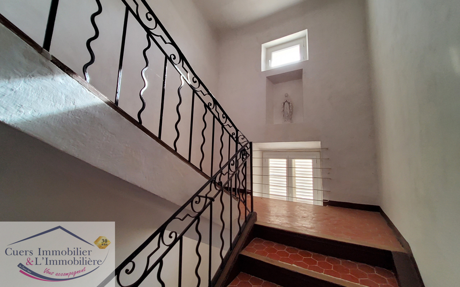 Dans une agréable bastide provençale au coeur du village et au premier étage, appartement lumineux à rénover.