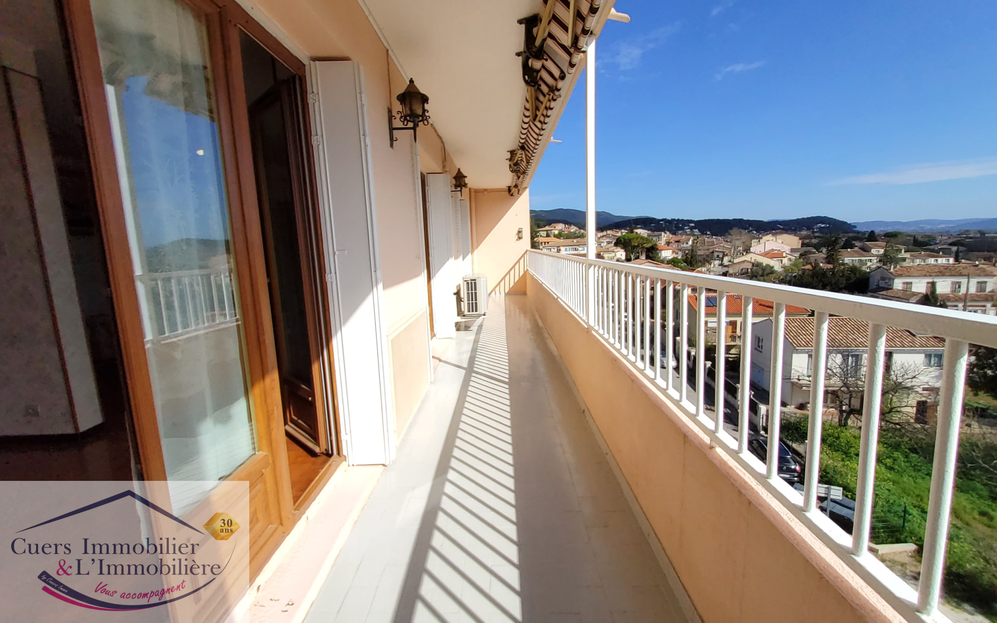 Cuers (83390)Cuers, appartement T4 traversant d'environ 72m2 au deuxième étage, avec grand balcon, cave et place de stationnement.