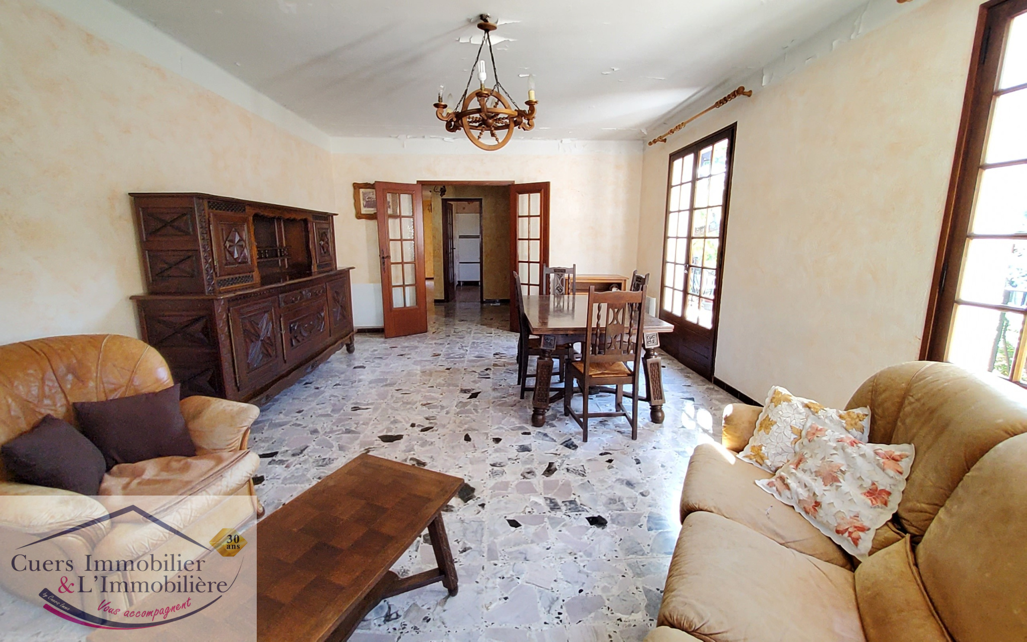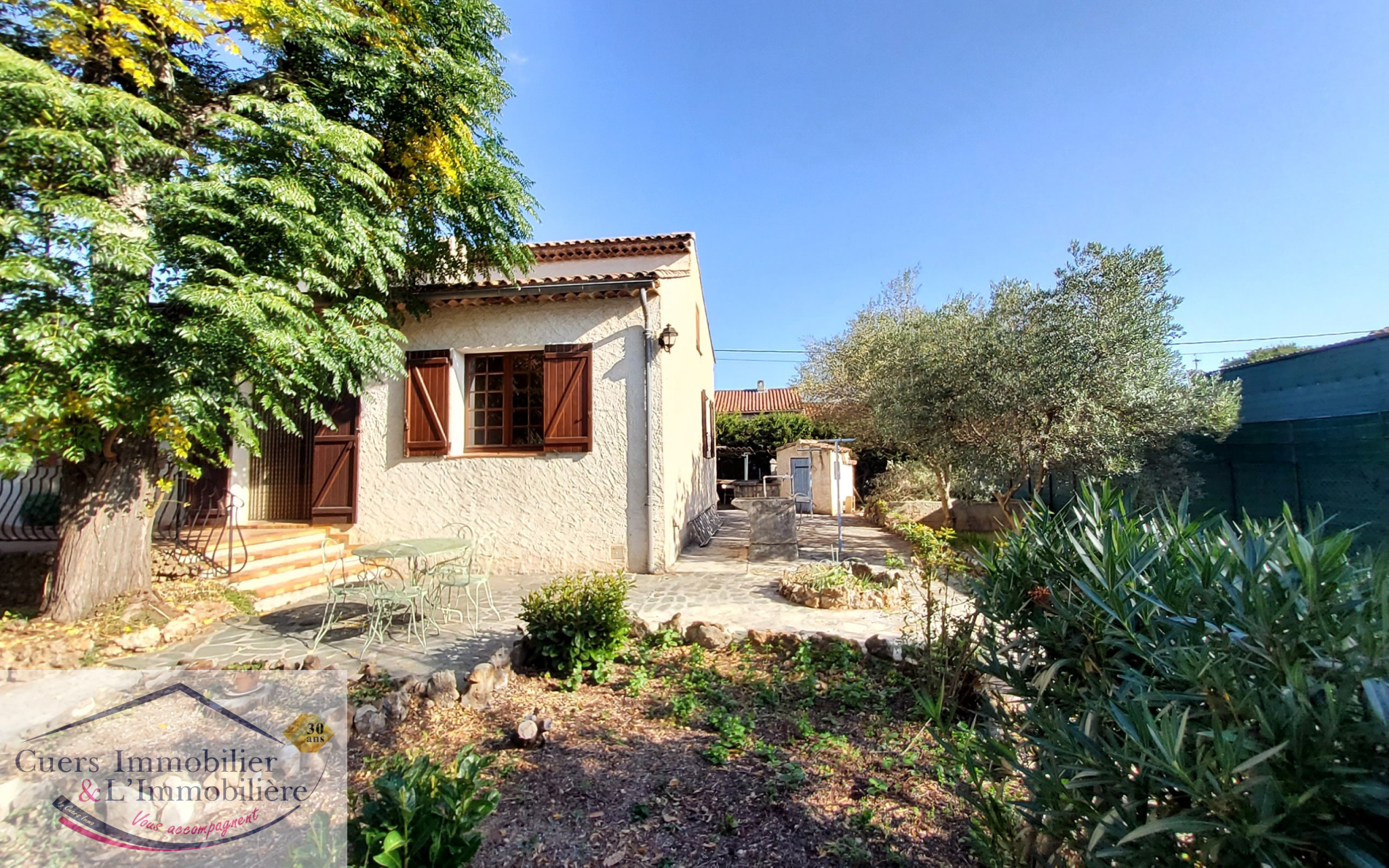 Cuers (83390)Cuers, villa T4 de plain-pied d'environ 94m2 avec garage sur un terrain plat et clôturé de 660m2.