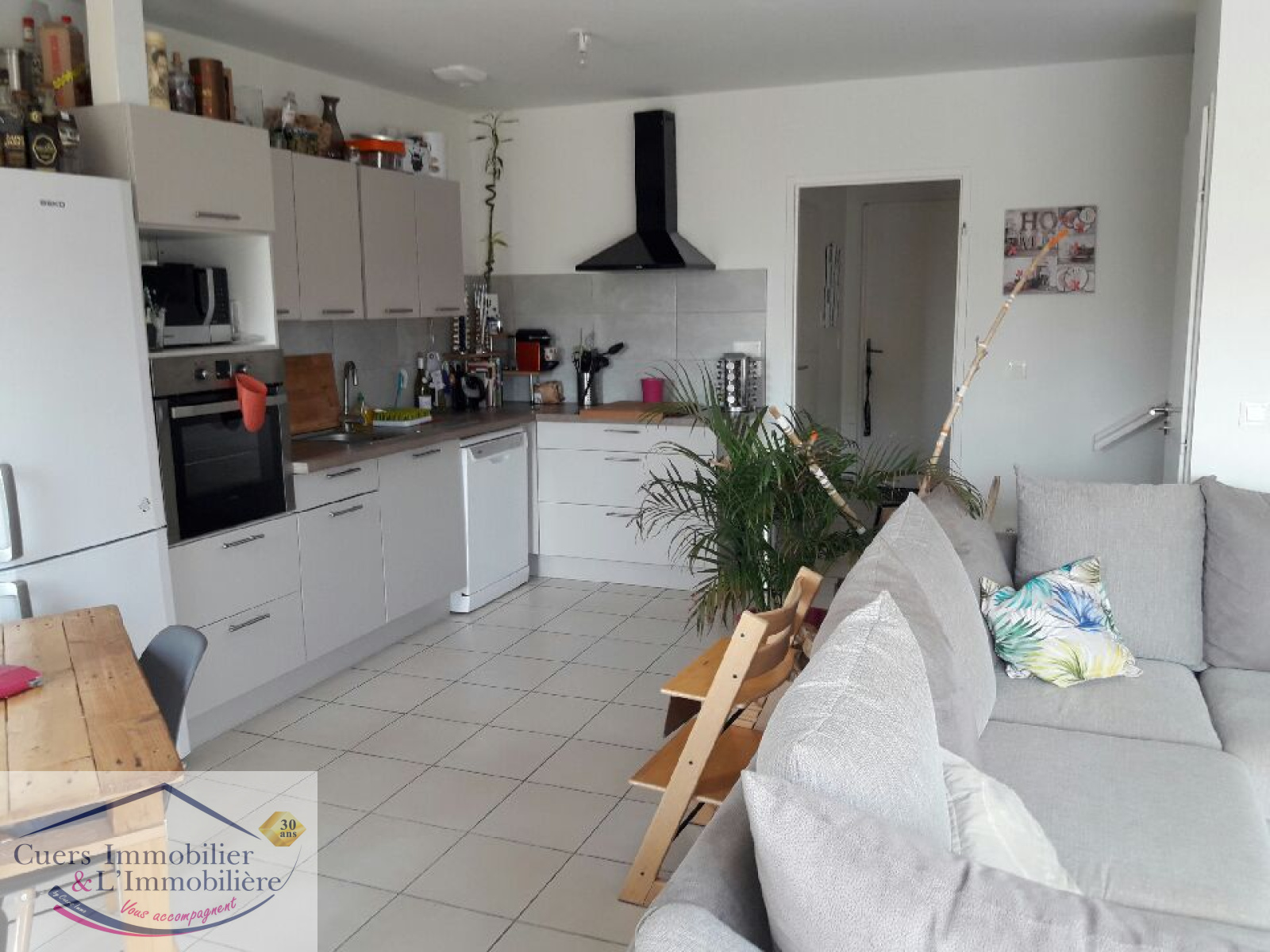 Vous découvrirez en rez de chaussée, un séjour donnant sur une terrasse bois plein sud, une cuisine aménagée et équipée ( plaque-four-hotte) , un wc.