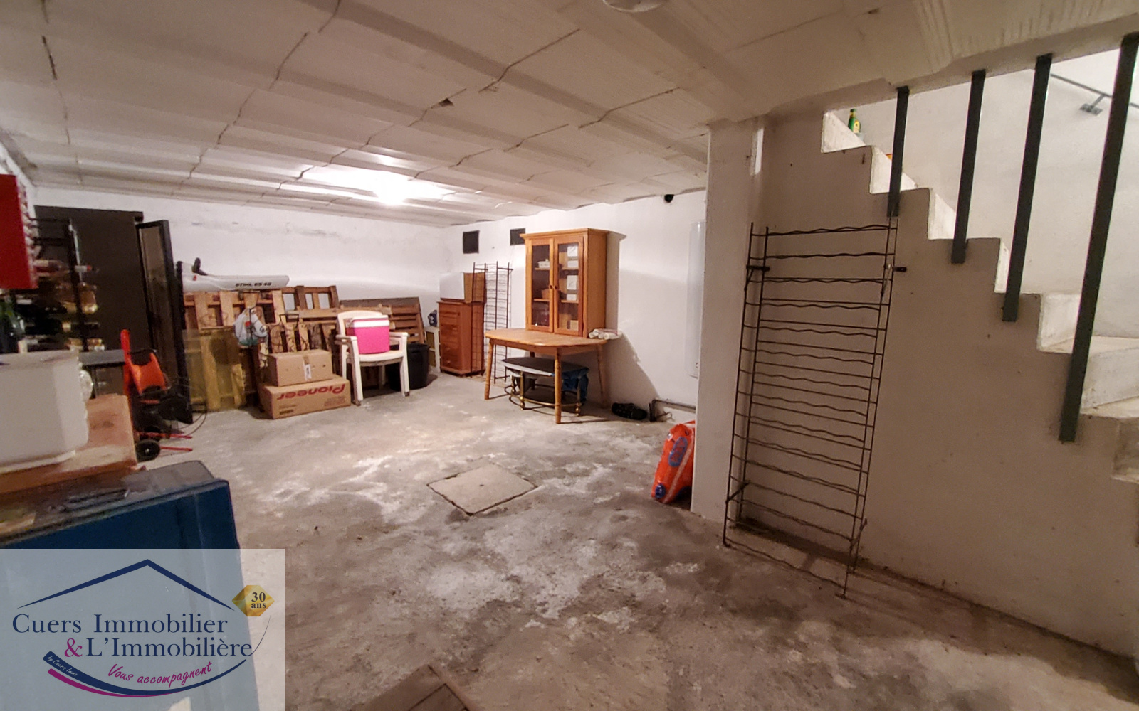 Un garage d'environ 23m2 attenant à la maison avec porte automatisée. Un grande cave en sous-sol, d'environ 26m2.