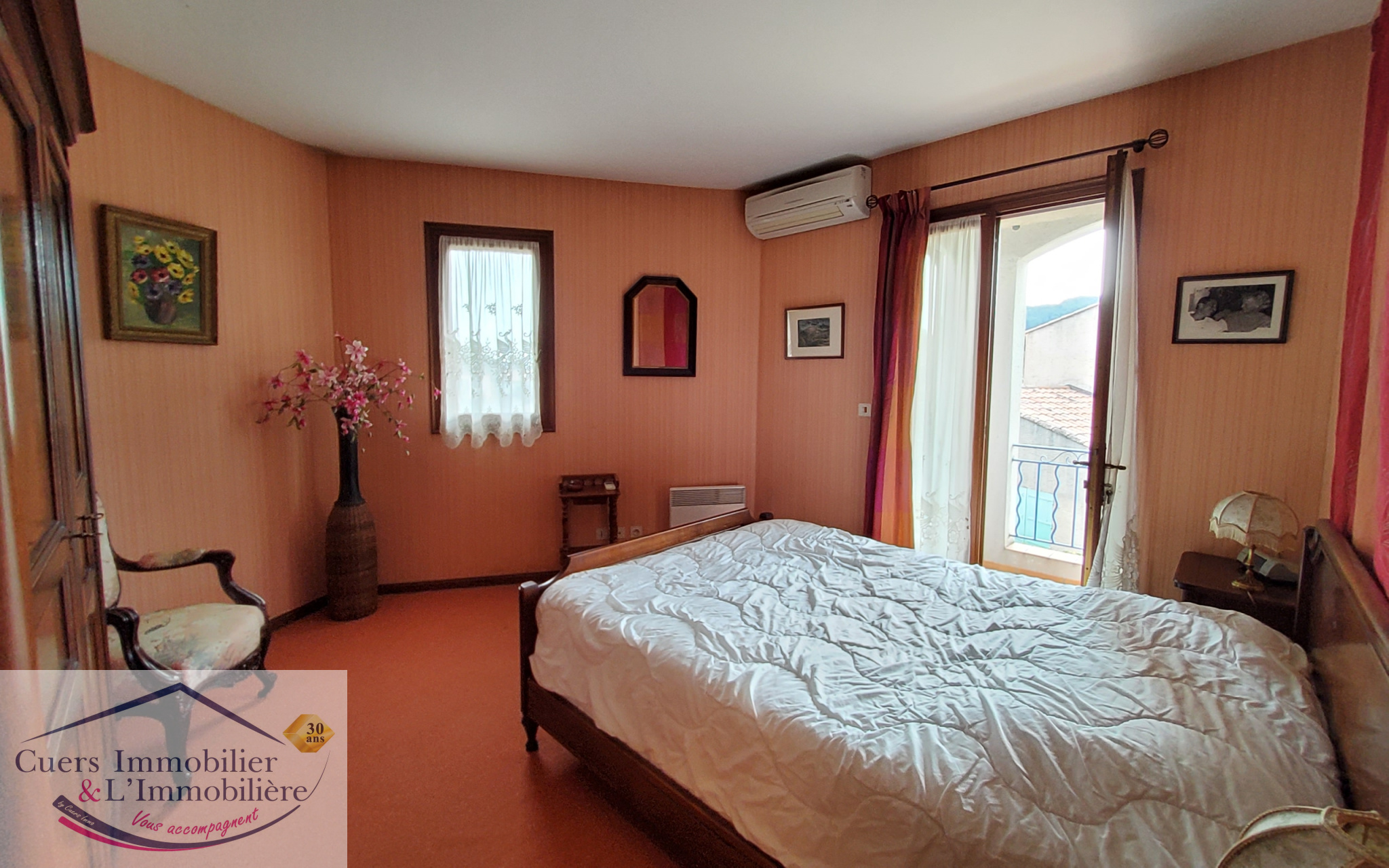 A l'étage, deux chambres dont une donnant sur une terrasse couverte, une salle de bain et un wc.