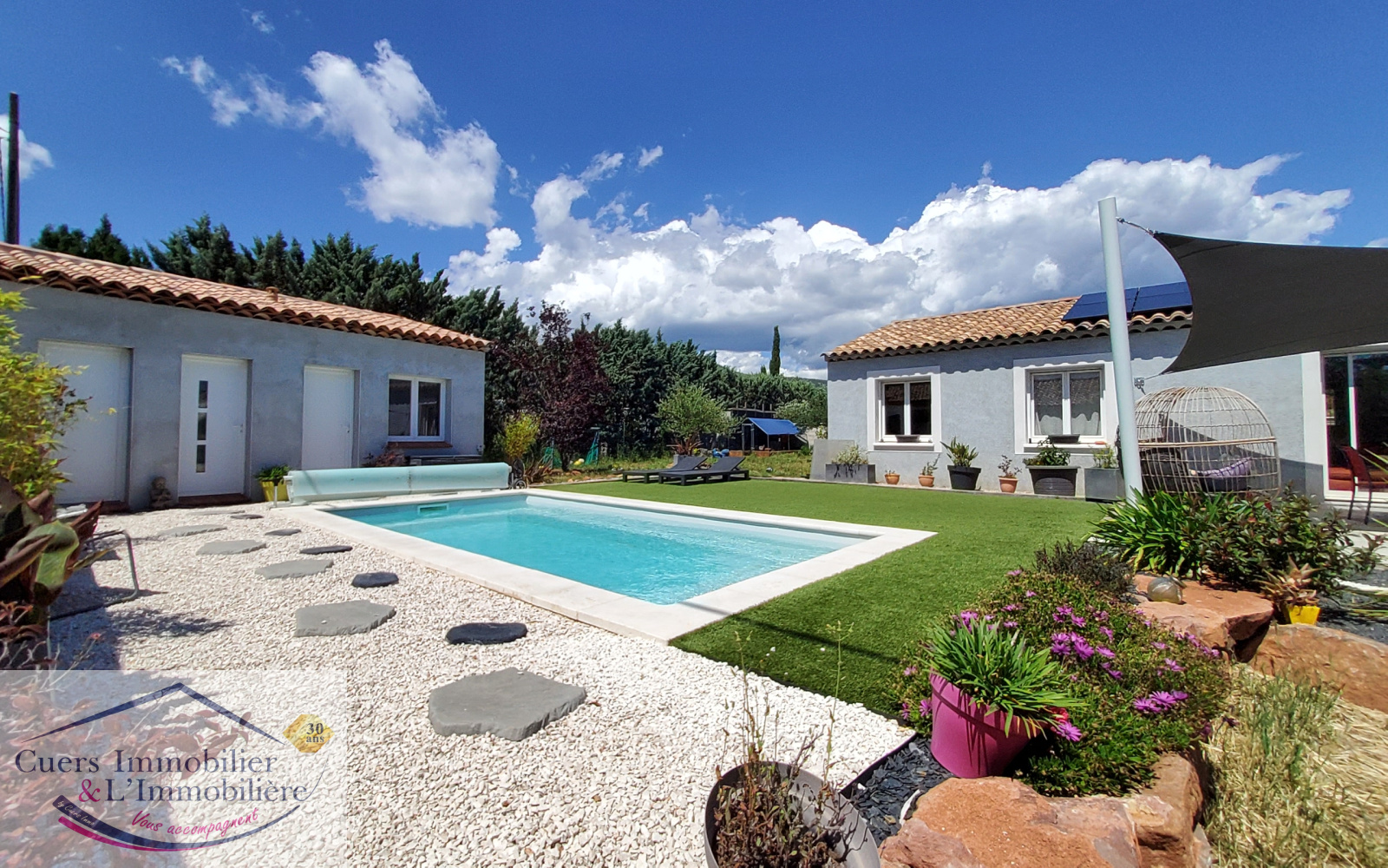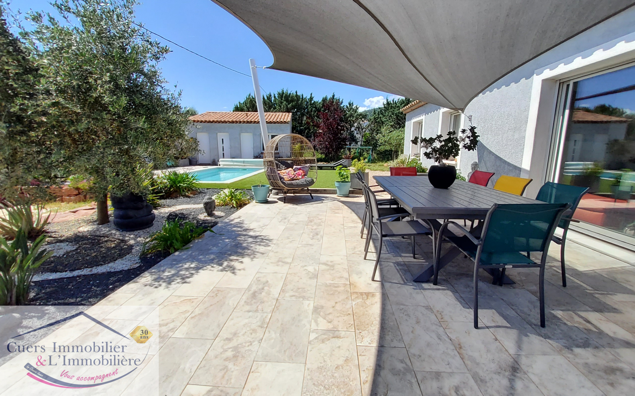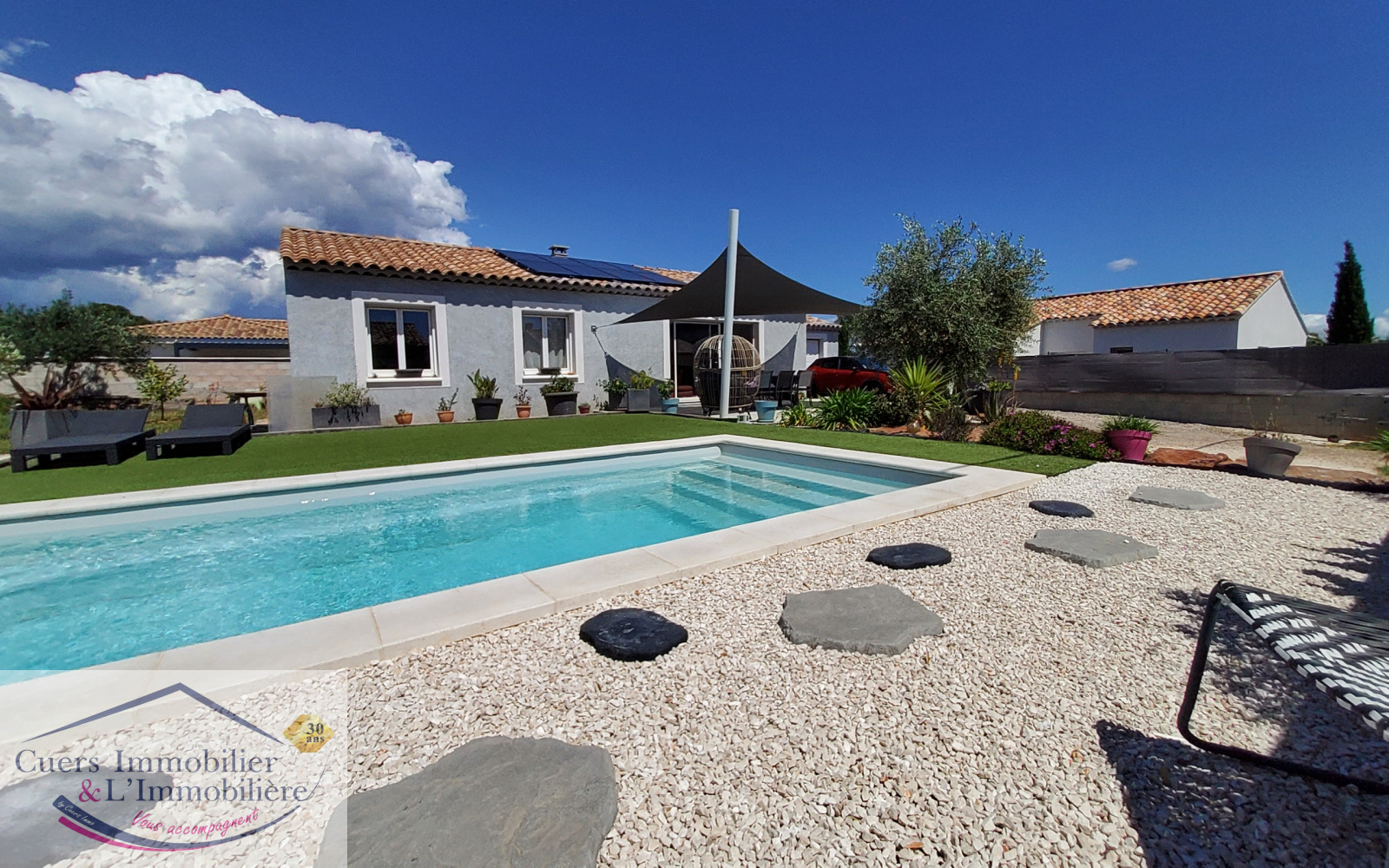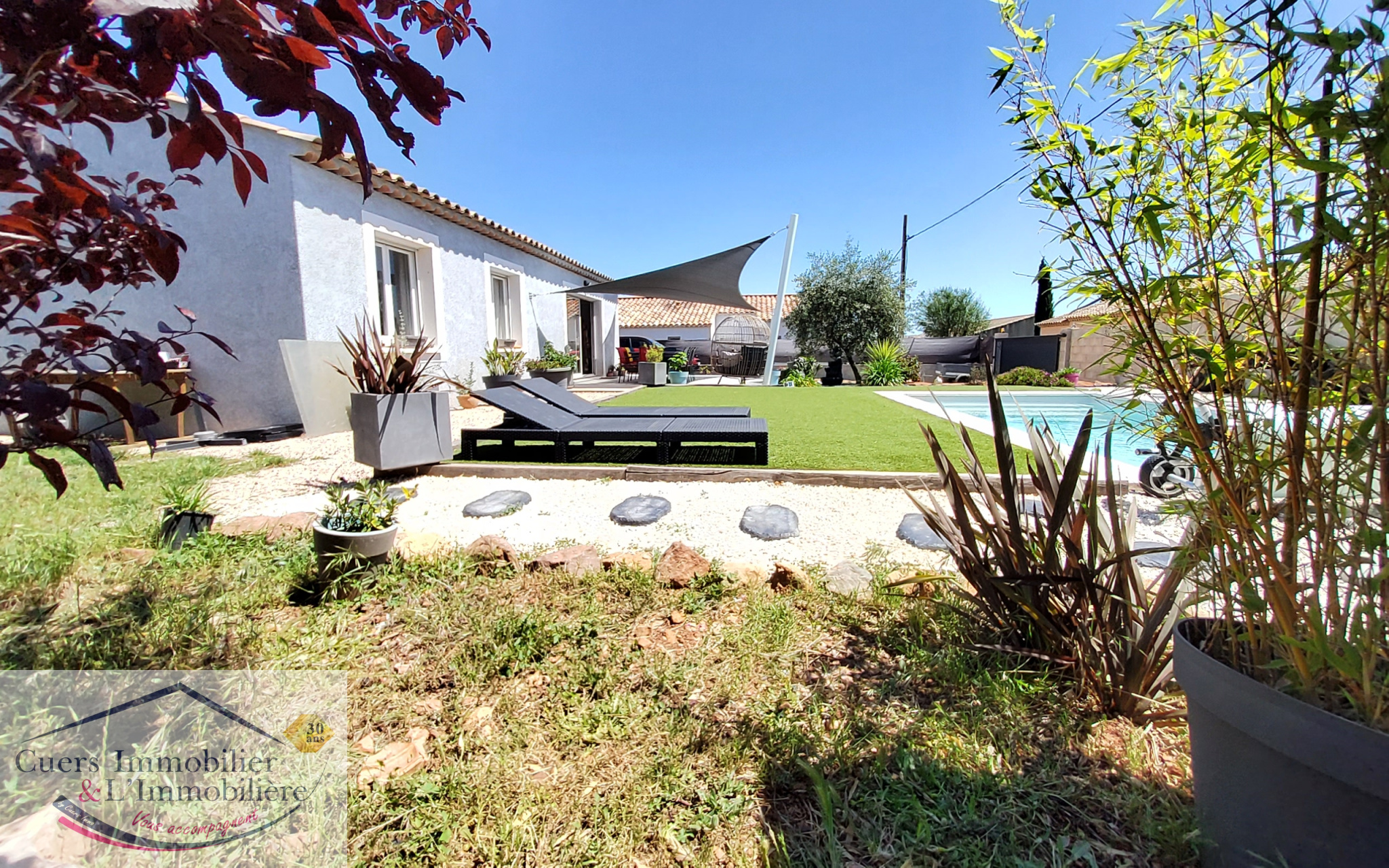 Cuers (83390)Cuers, à proximité des accès autoroutiers et des commodités, dans un secteur calme et proche campagne, découvrez cette villa récente de type 4 et de plain-pied d'environ 90m2, sur une parcelle de 625m² avec piscine, garage et dépendances.