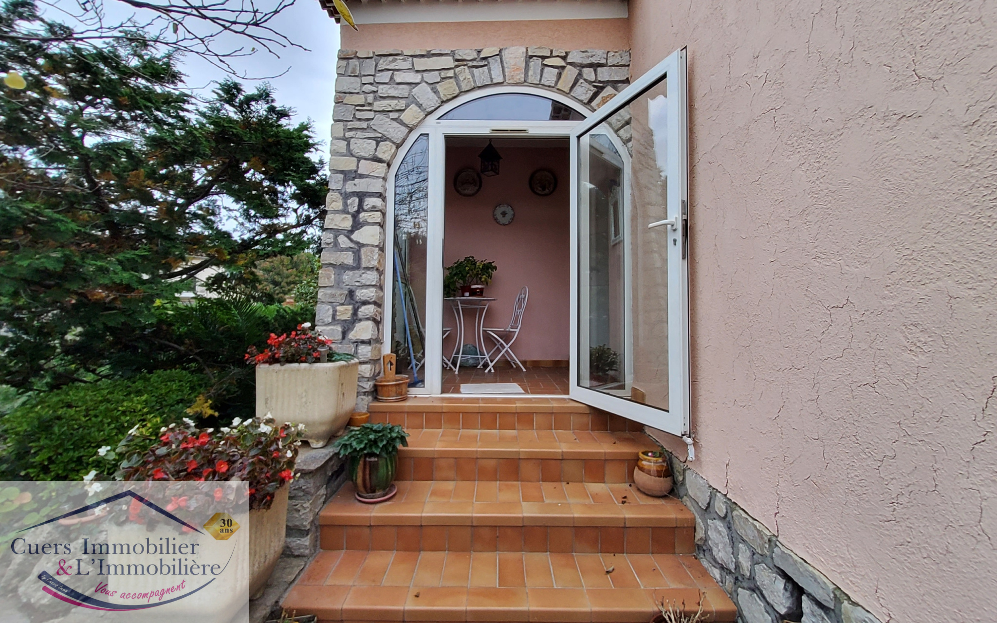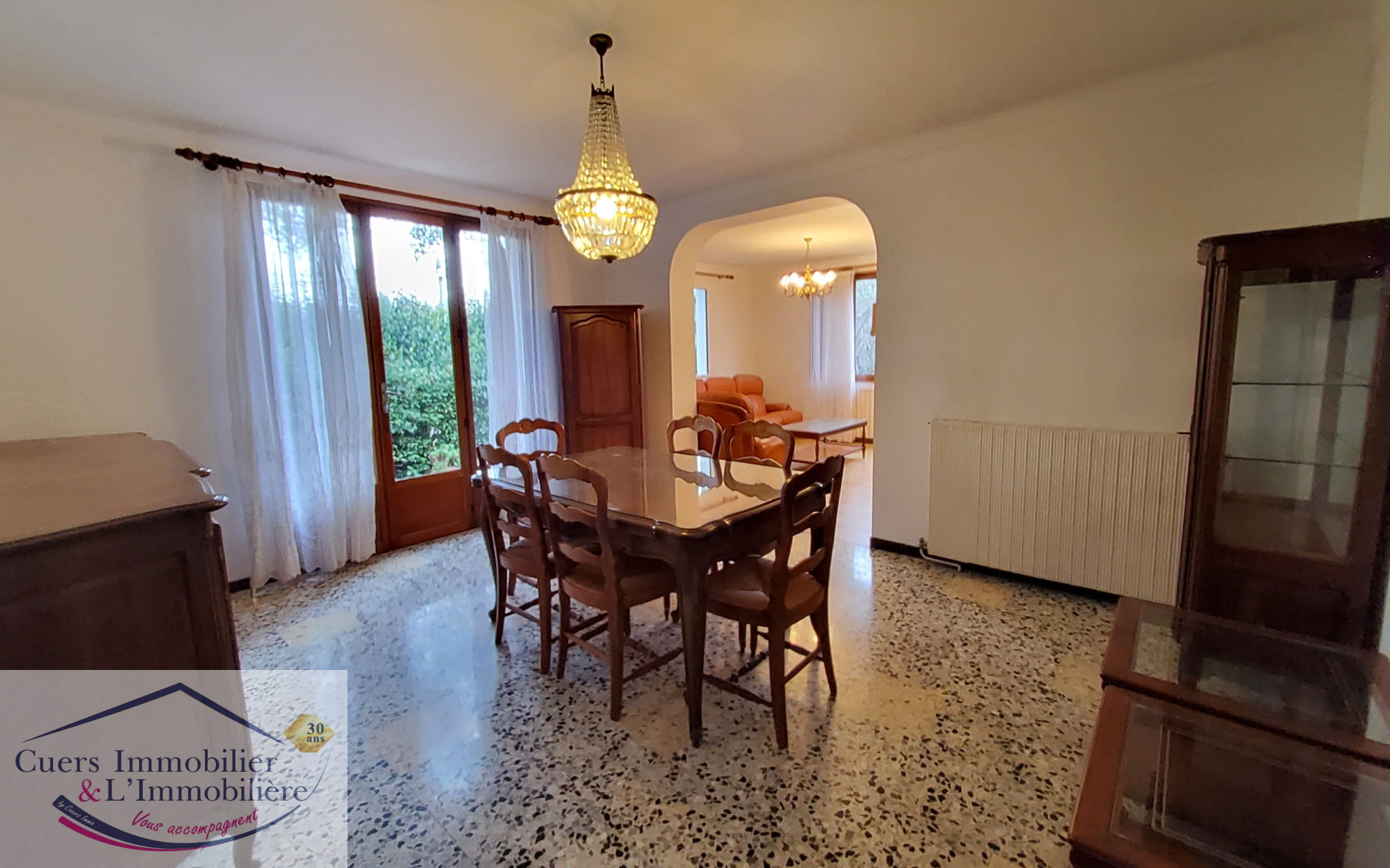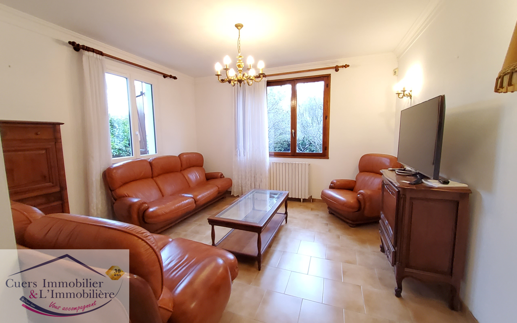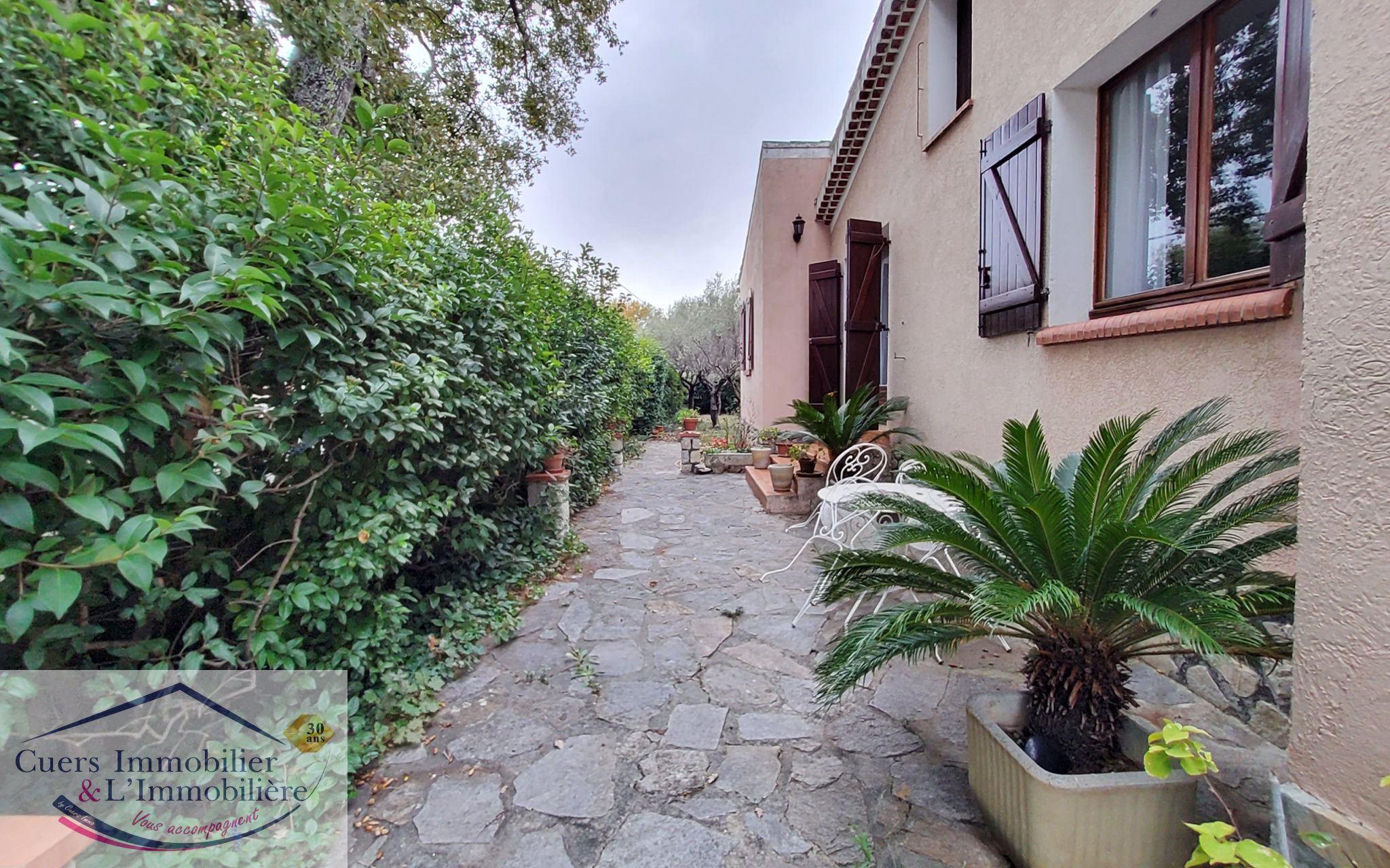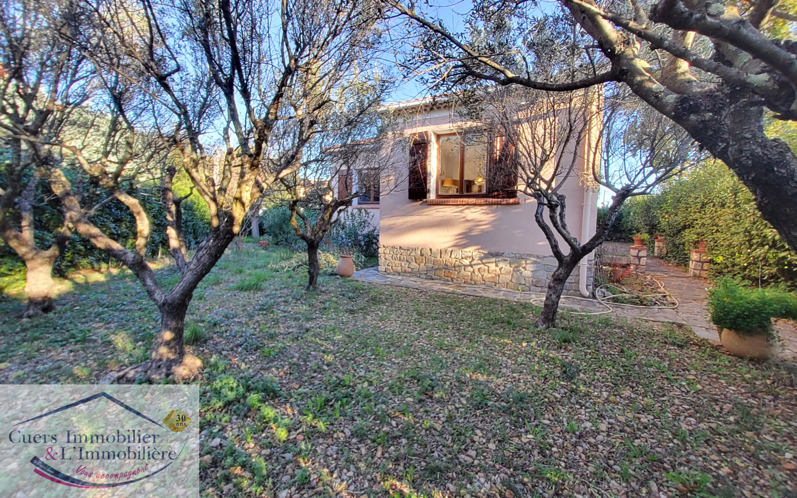 Cuers (83390)Cuers, villa T4 de plain-pied d'environ 80m2, avec garage et atelier atenants, sur un terrain de 668m2.