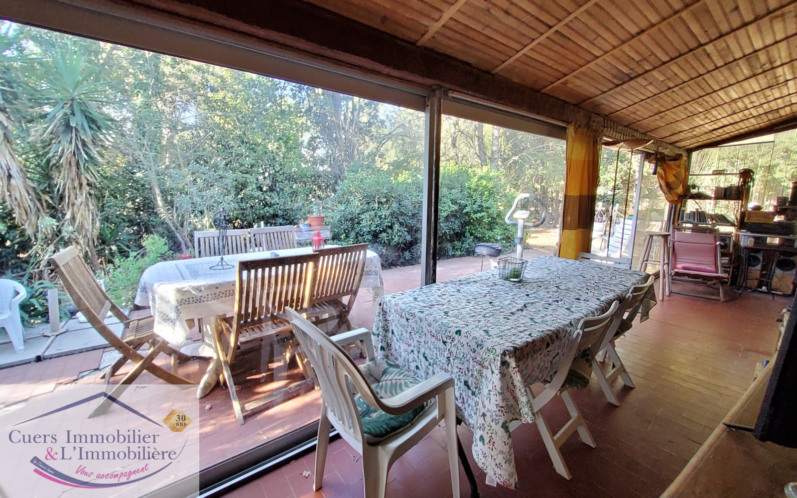 Cuers (83390)Cuers, villa de type 5 d'environ 152m2 + verandas, dans un cadre verdoyant sur un terrain plat de 5370m2