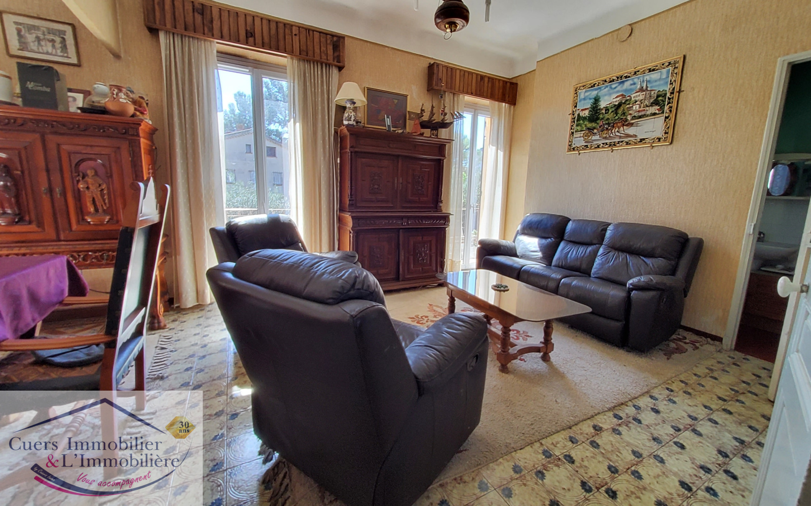 Cuers (83390)Cuers, proche du centre et de ses commodités, découvrez cette villa de type 5 d'environ 115m² avec garage, sur une parcelle de 565m².