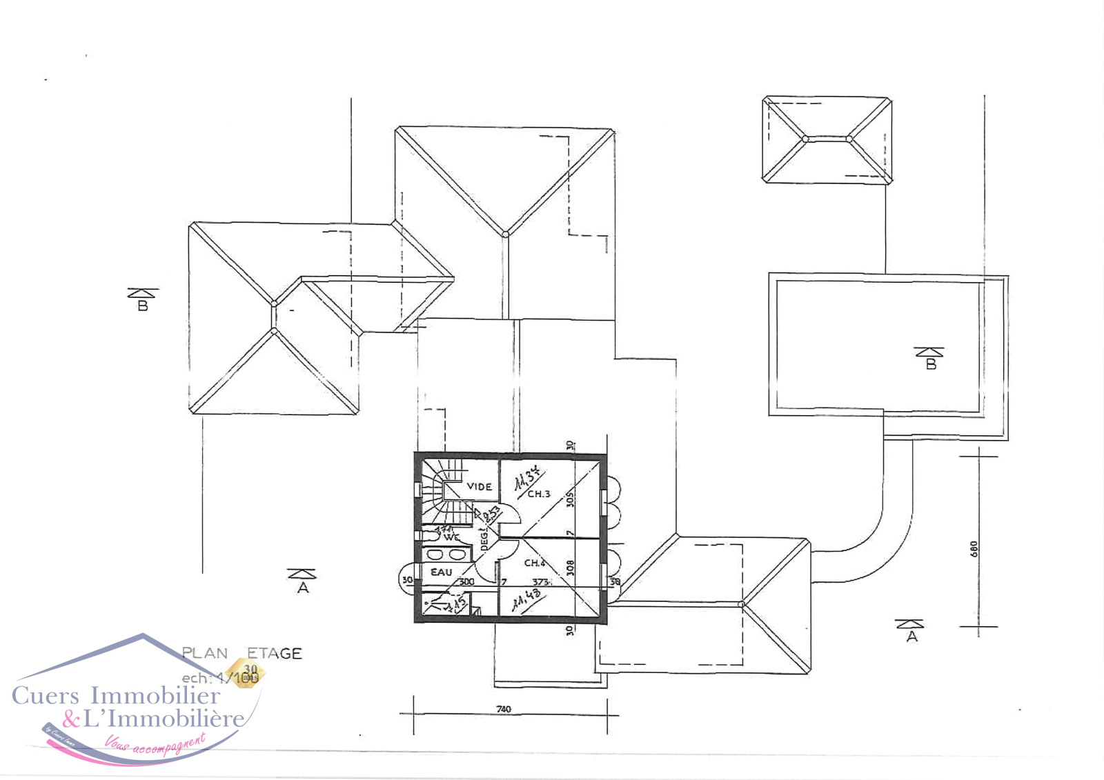 A l'étage, un dégagement desservant deux chambres, une salle d'eau et un wc.