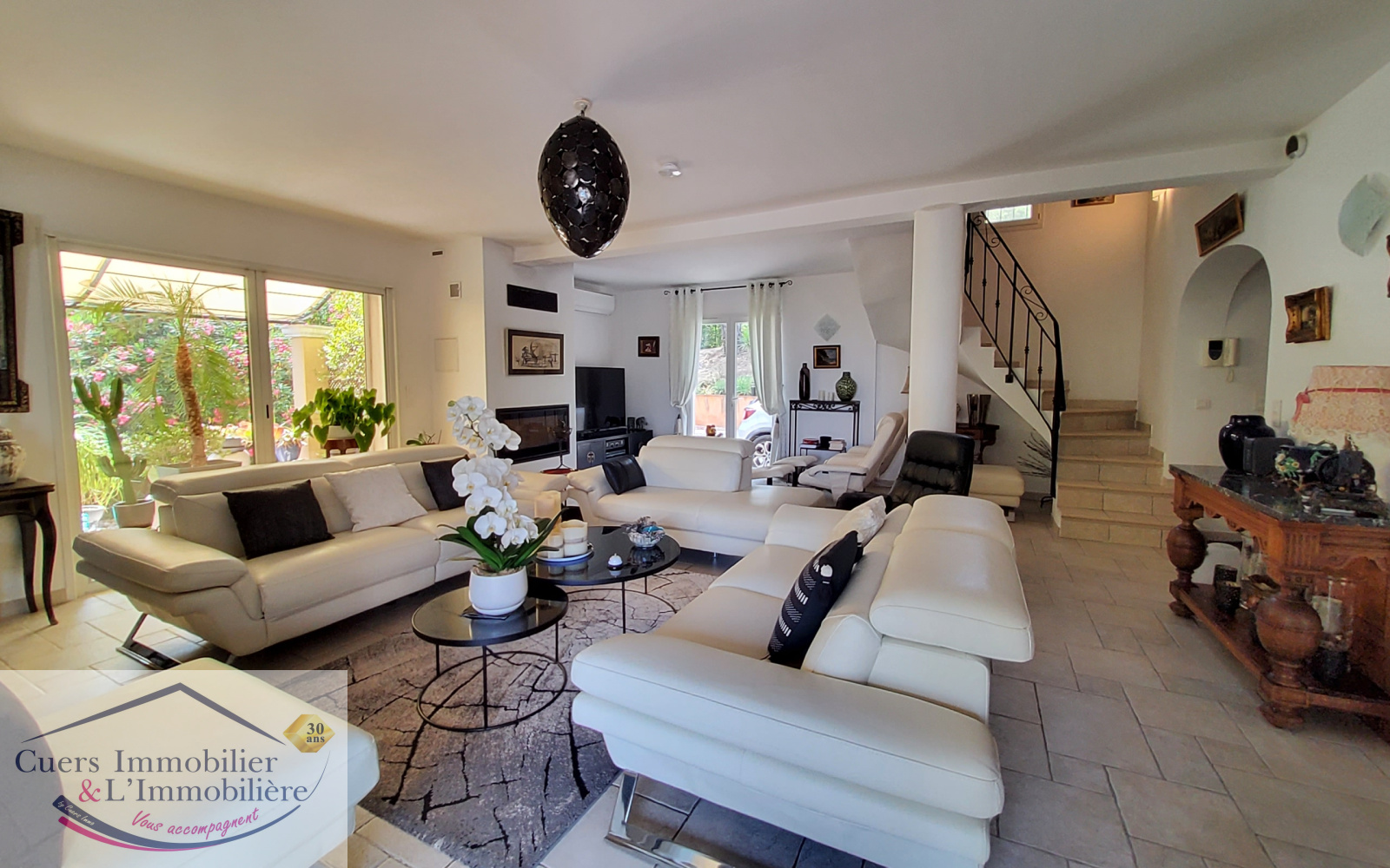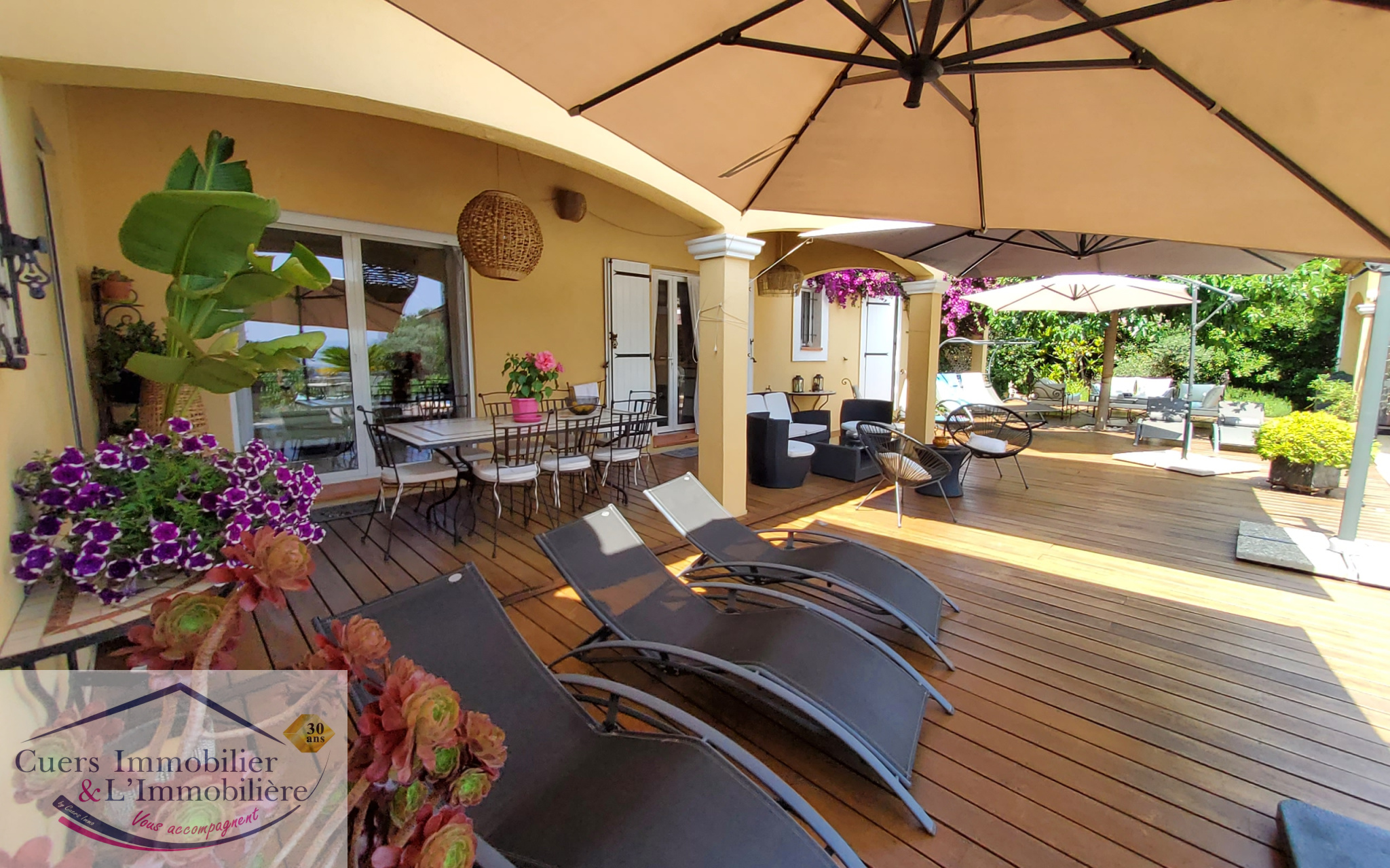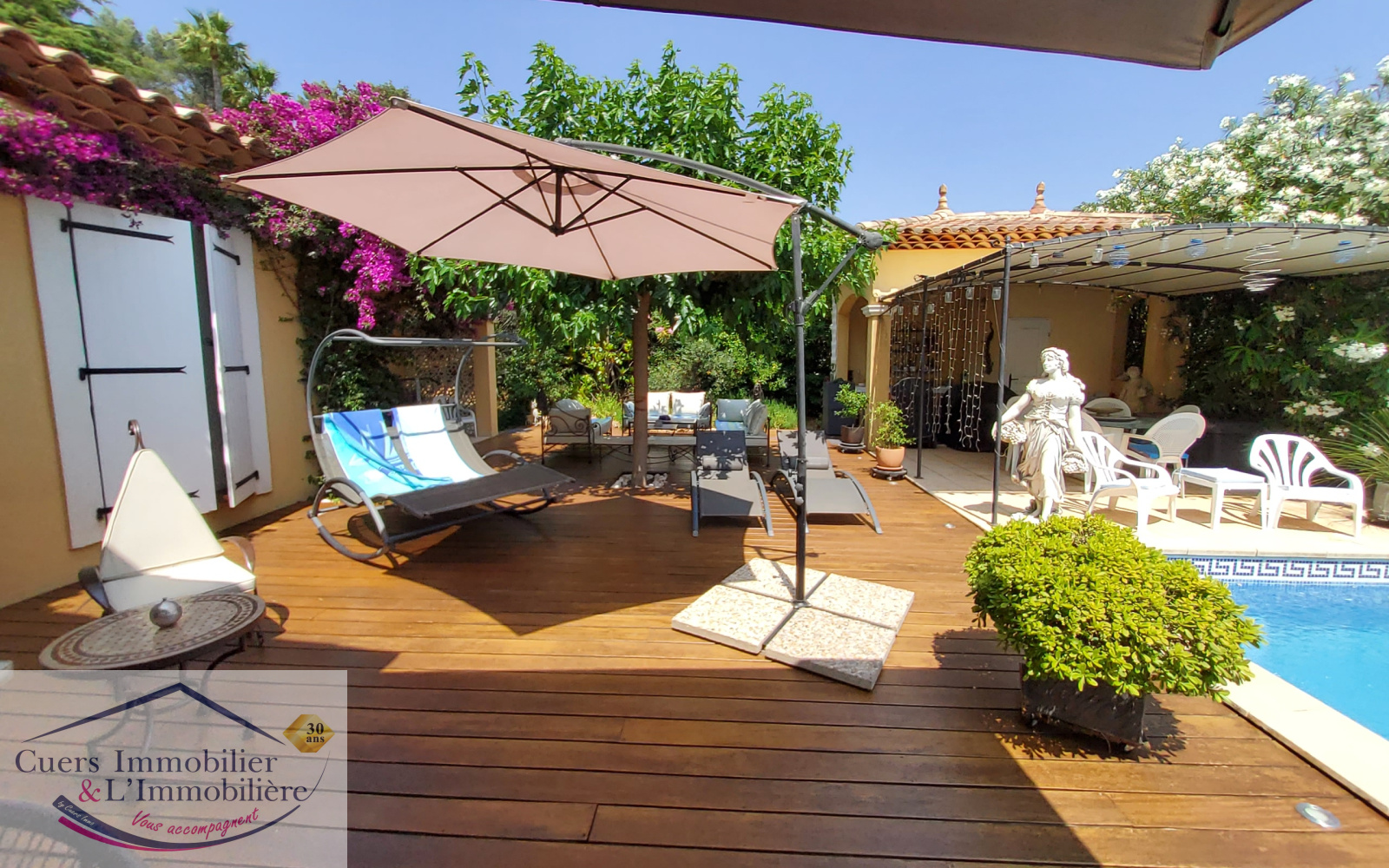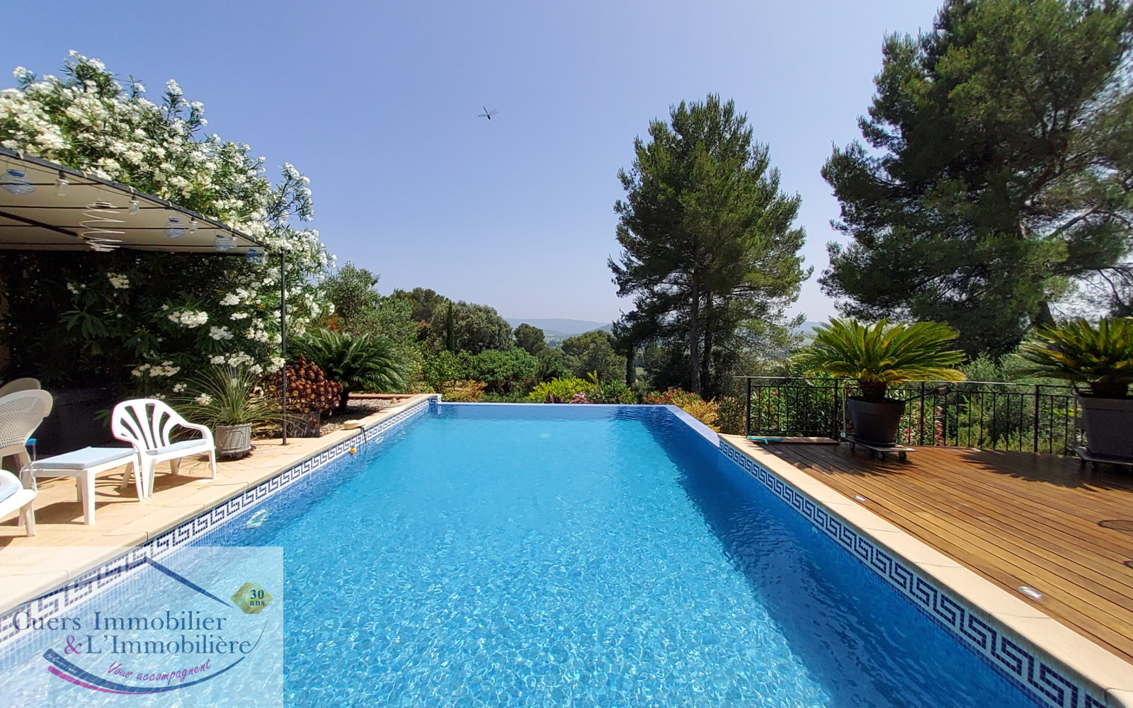 Cuers (83390)Cuers, avec une superbe vue dégagée et au coeur d'un environnement privilégié, découvrez cette villa d'environ 172m2 édifiée sur un terrain de 2000m2, avec dépedances et piscine à débordement.