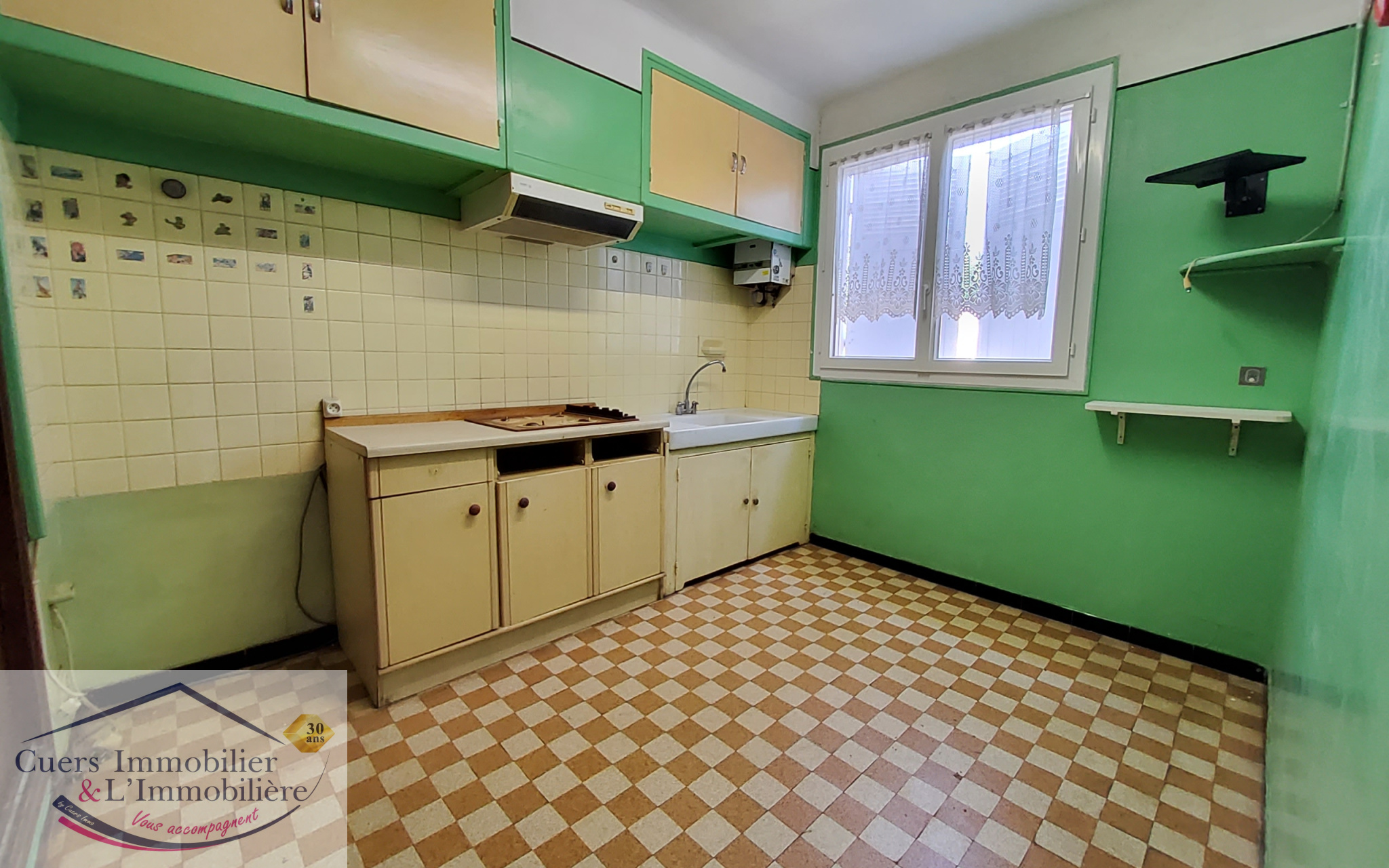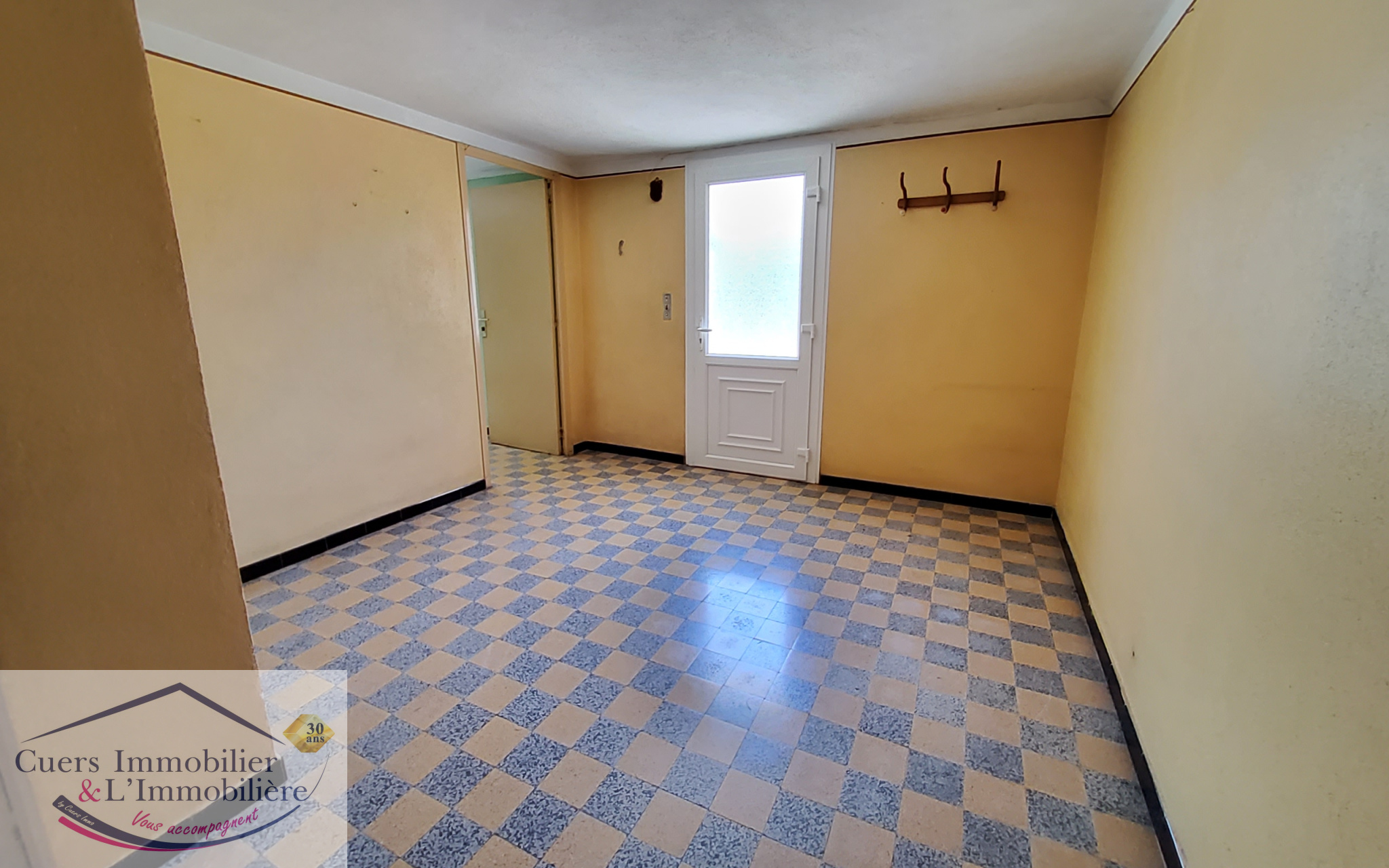 Elle se compose en rez-de-chaussée d'une grande entrée desservant une cuisine, une chambre avec placard, une salle d’eau, un wc et un cellier/buanderie.
