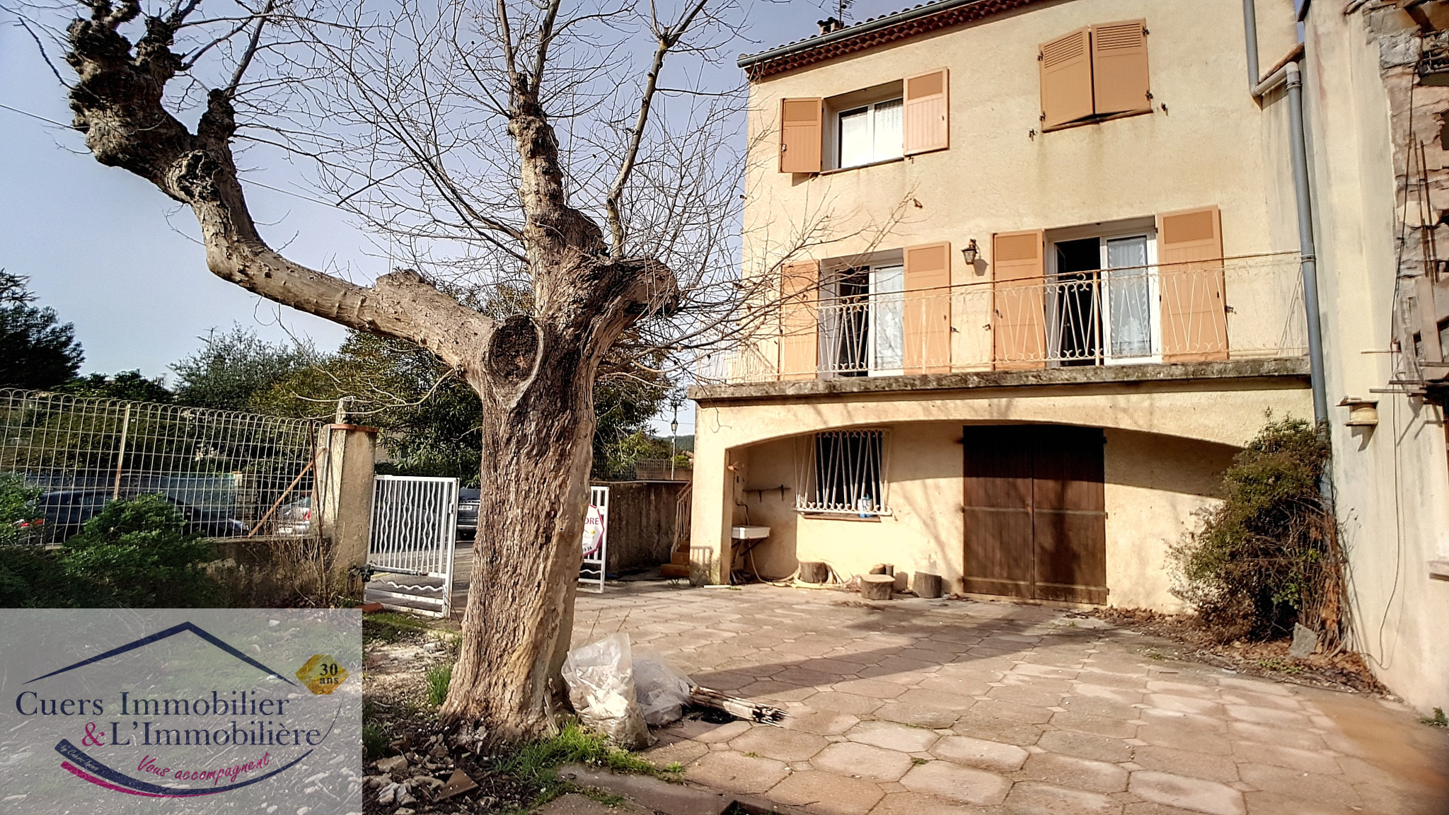 Cuers (83390)Cuers, grande maison de type 5 de 124m² avec jardin, terrasses et grand garage. En rez de chaussée, vous découvrirez un grand garage d'environ 66m2, une buanderie avec douche. Au premier étage, une entrée, une cuisine ouverte sur la salle à manger, un grand salon avec cheminée donnant sur terrasse plein sud, un wc. Au deuxiéme étage, quatre chambres spacieuses et une salle d'eau avec wc.