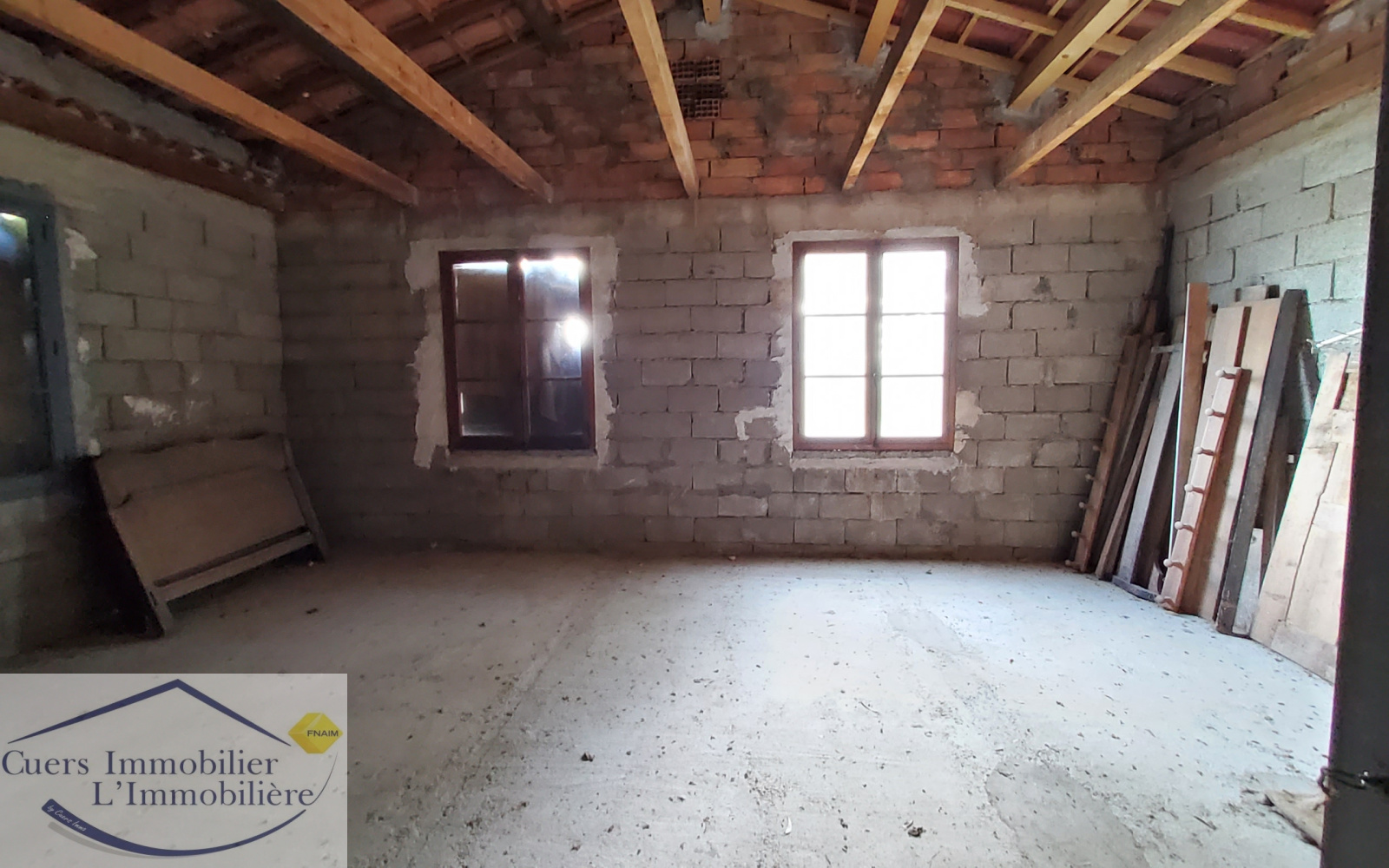 A l'étage vous trouverez, deux grandes chambres, un bureau, une salle de bains et une piéce brute de 28m2 à réaménager.