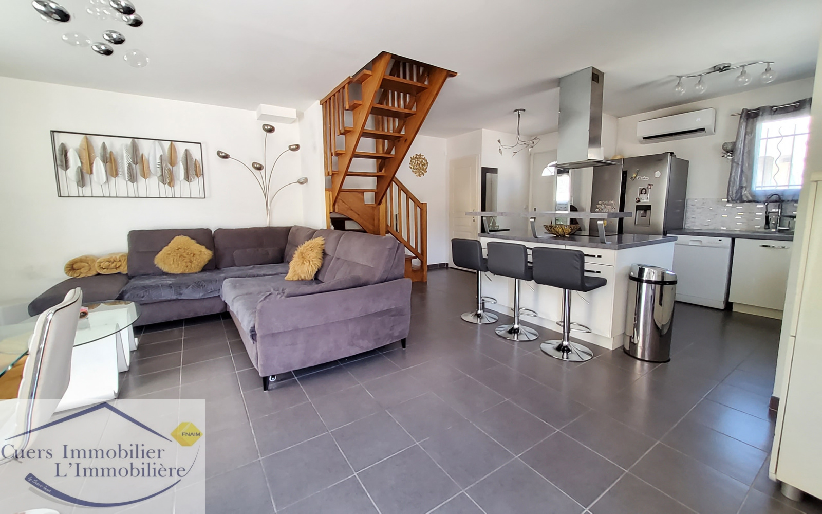 Cuers (83390)CUERS, villa 4 pièces de 80 m², dans un quartier calme et recherché, très jolie maison mitoyenne d'un côté sur un terrain de 204m².