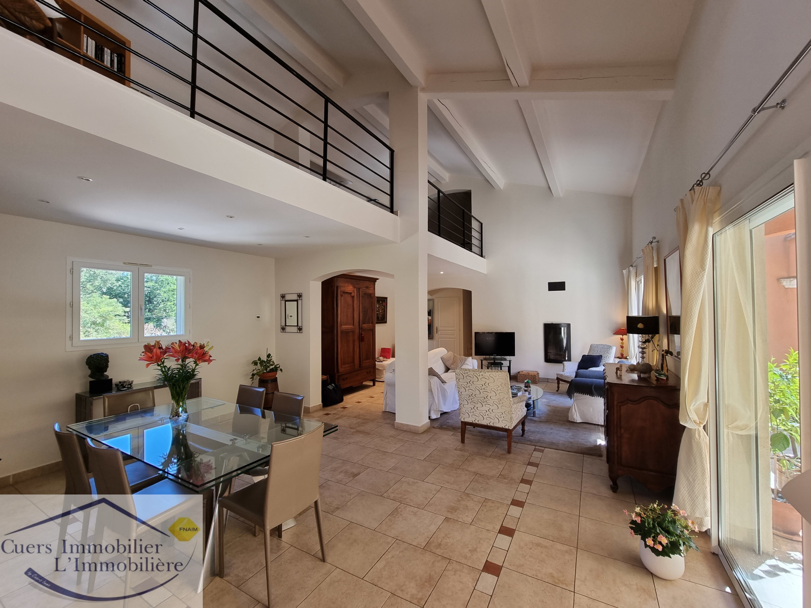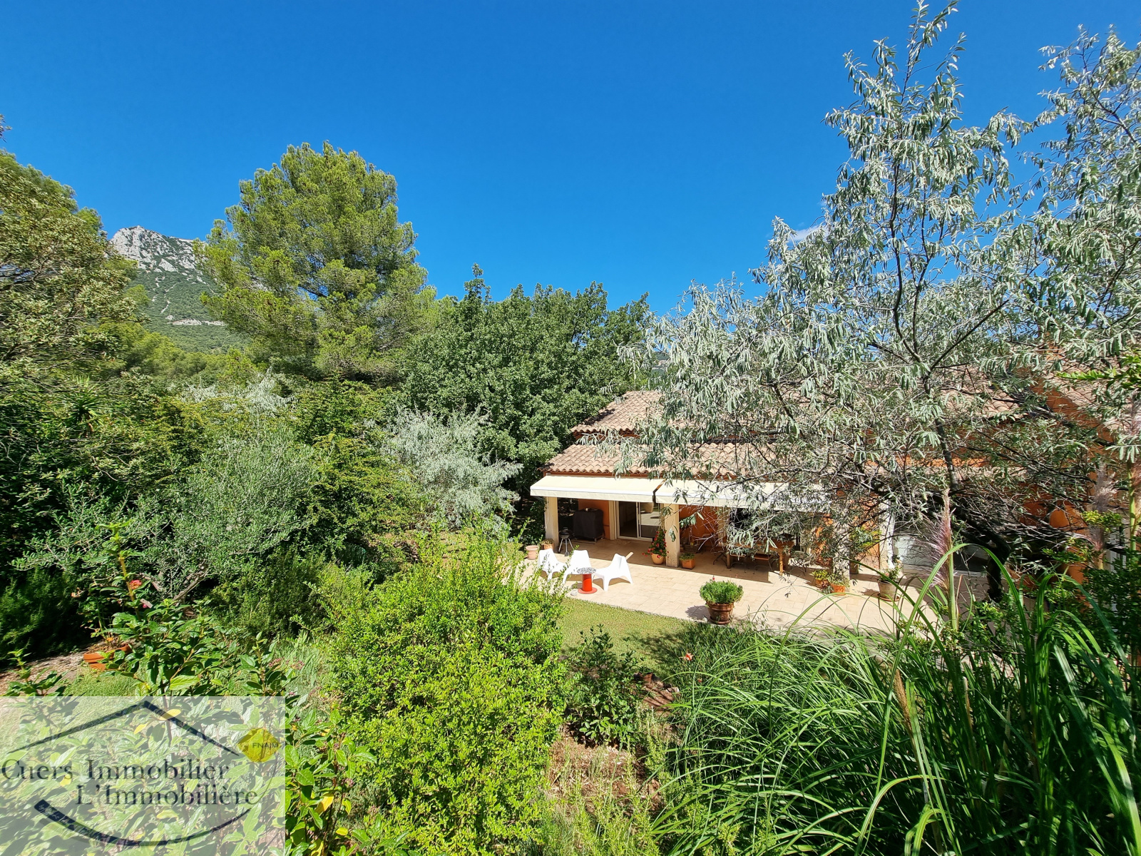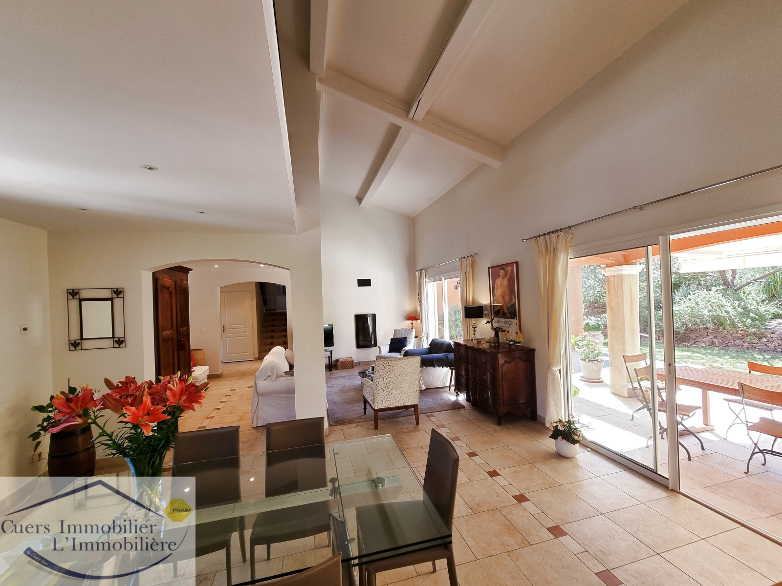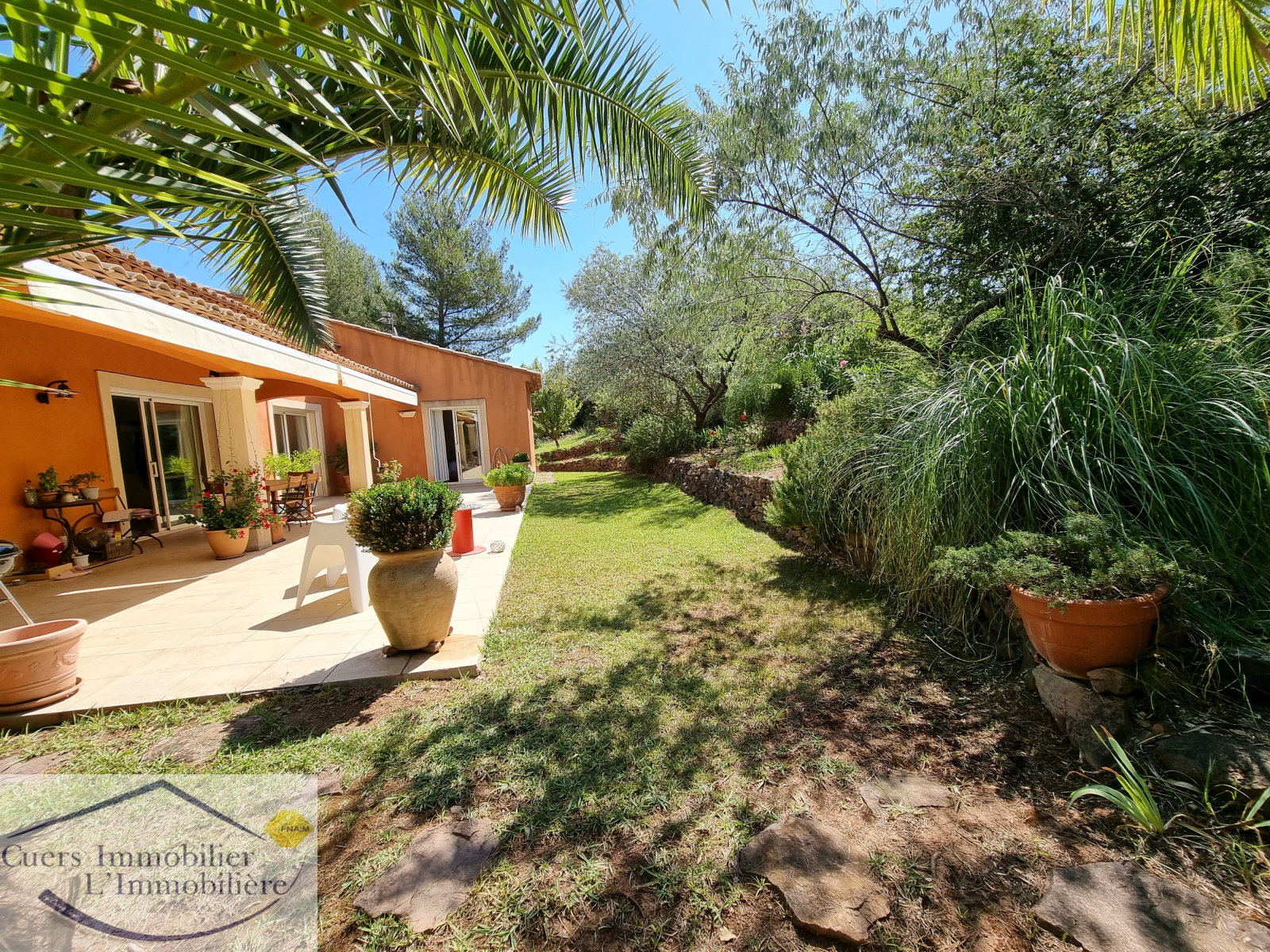 Elle est composée d'un vaste séjour ouvrant par de larges baies sur une terrasse partiellement ombragée d'enviorn 62 m², une cuisine semi-ouverte aménagée et équipée prolongée par un cellier. Une suite parentale de plain-pied.