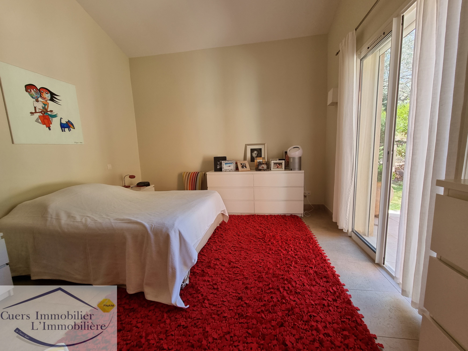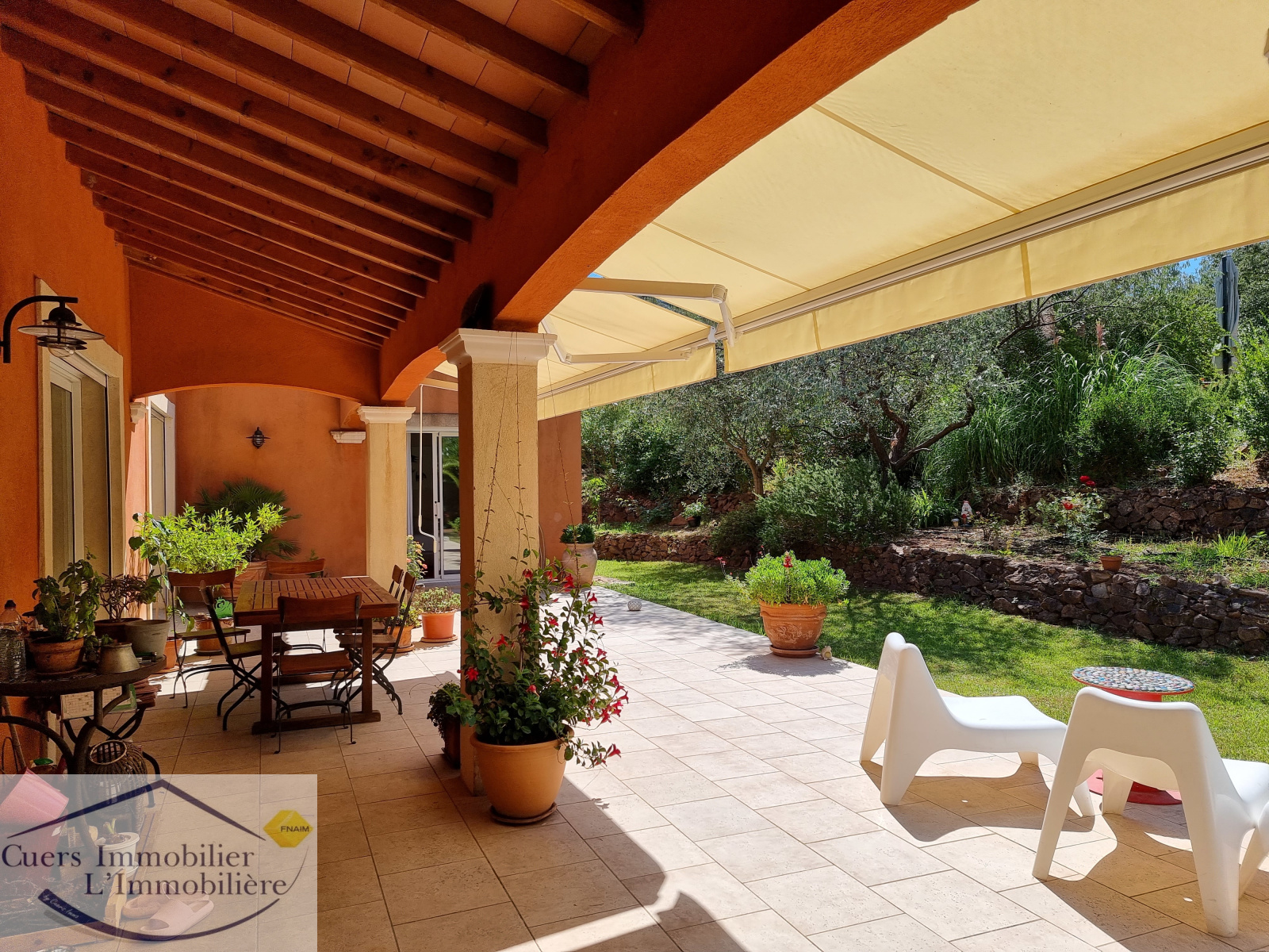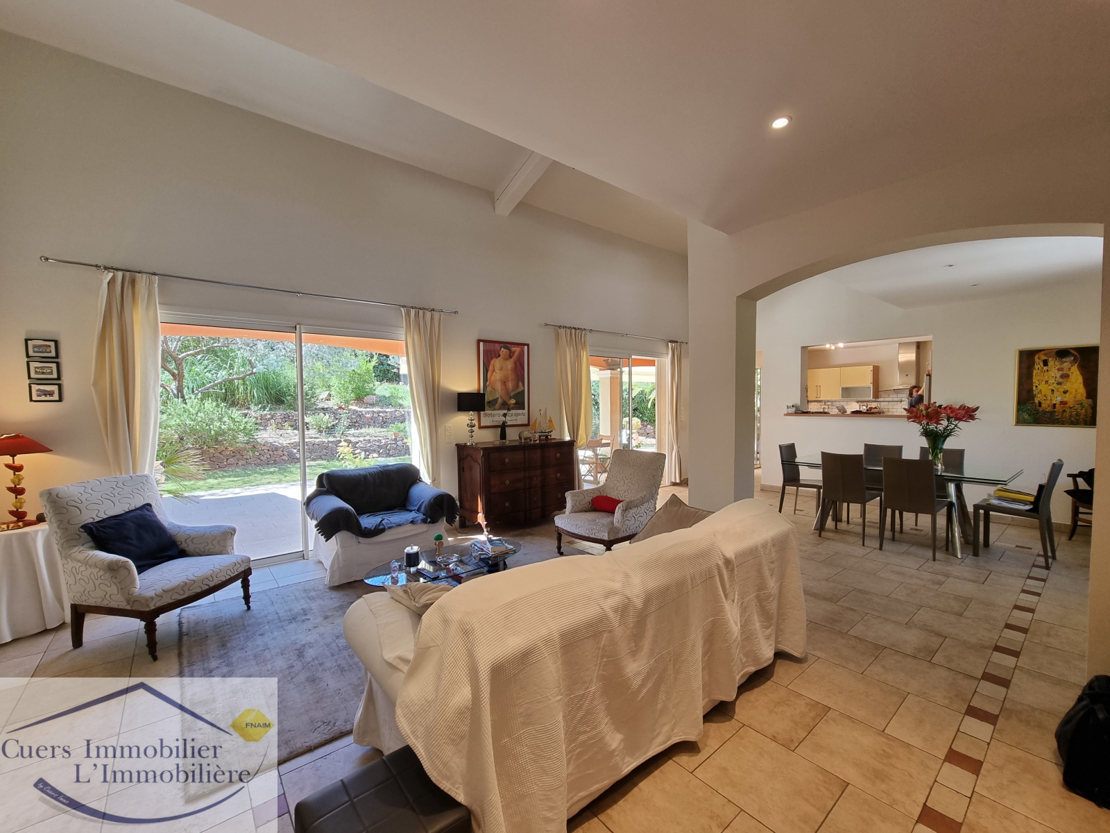 Elle est composée d'un vaste séjour ouvrant par de larges baies sur une terrasse partiellement ombragée d'enviorn 62 m², une cuisine semi-ouverte aménagée et équipée prolongée par un cellier. Une suite parentale de plain-pied.