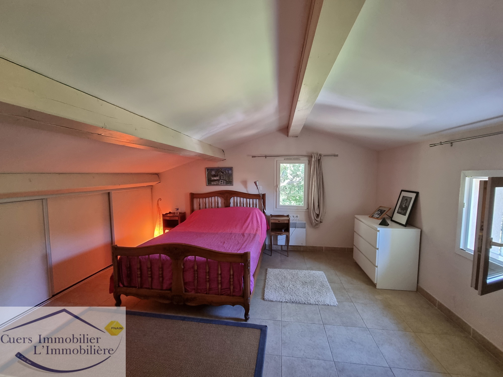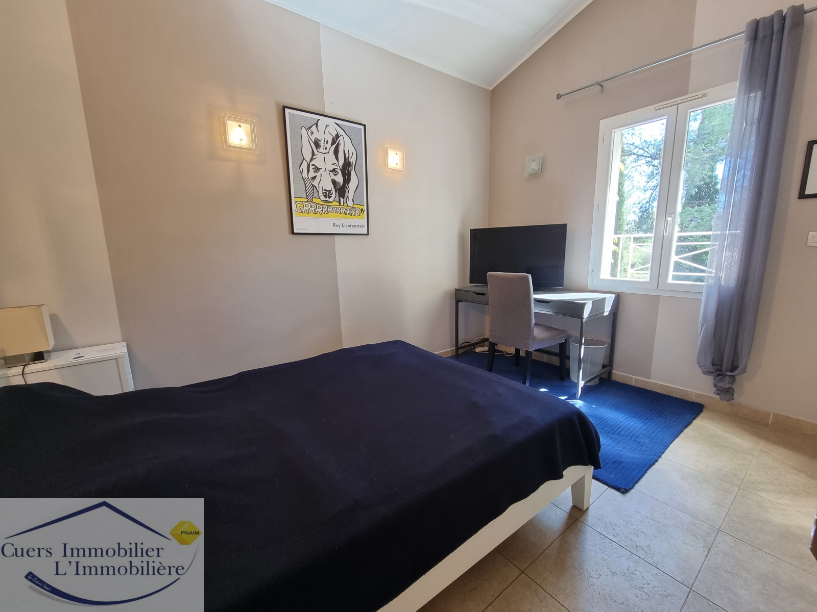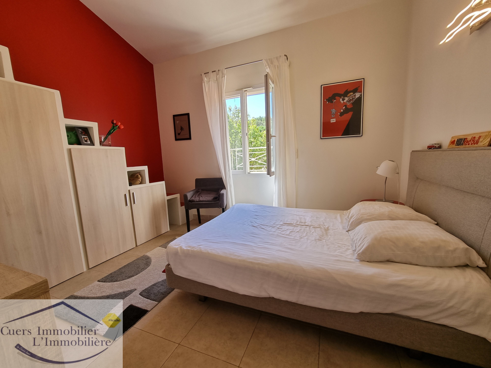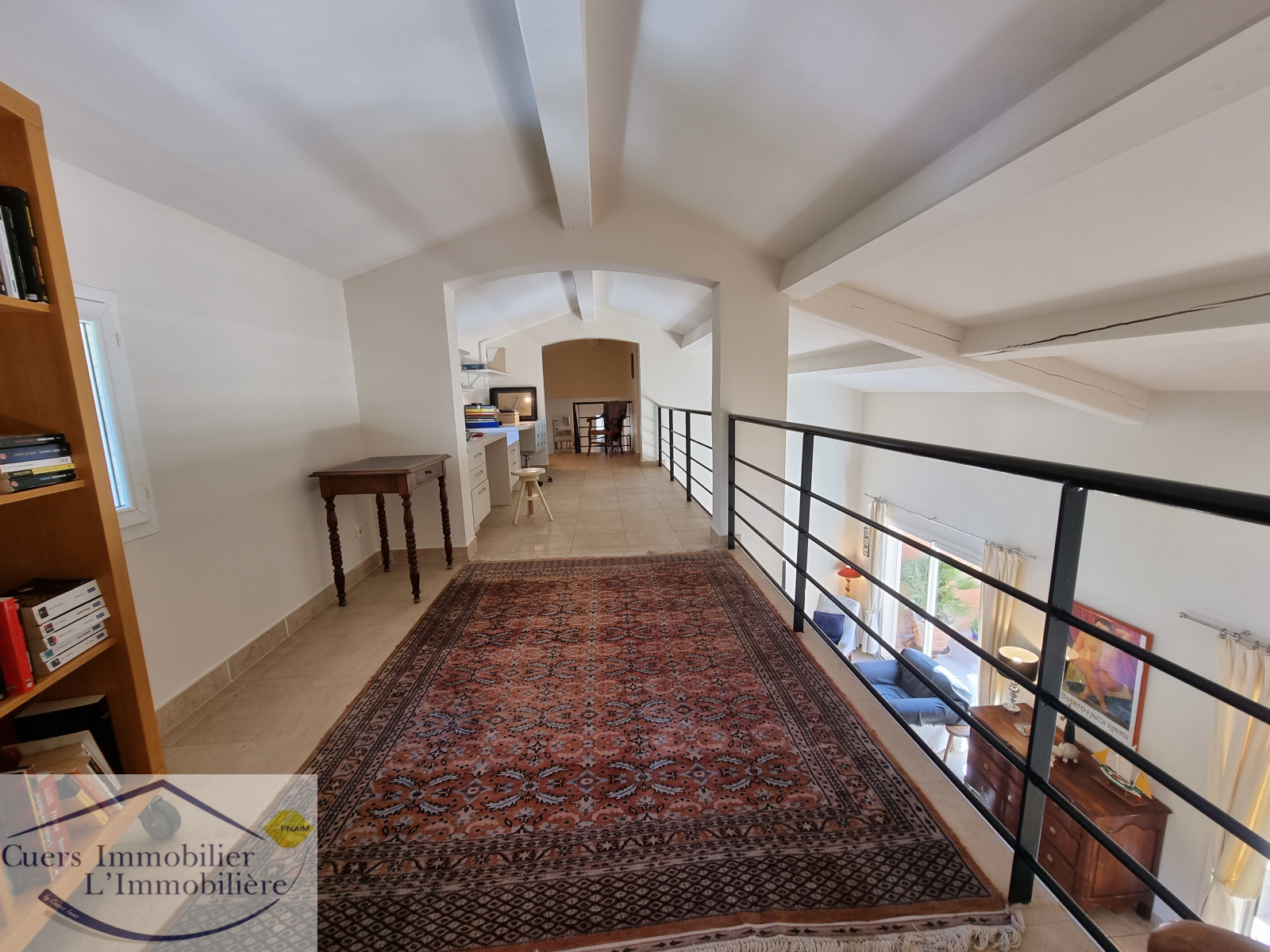 Elle est composée d'un vaste séjour ouvrant par de larges baies sur une terrasse partiellement ombragée d'enviorn 62 m², une cuisine semi-ouverte aménagée et équipée prolongée par un cellier. Une suite parentale de plain-pied.