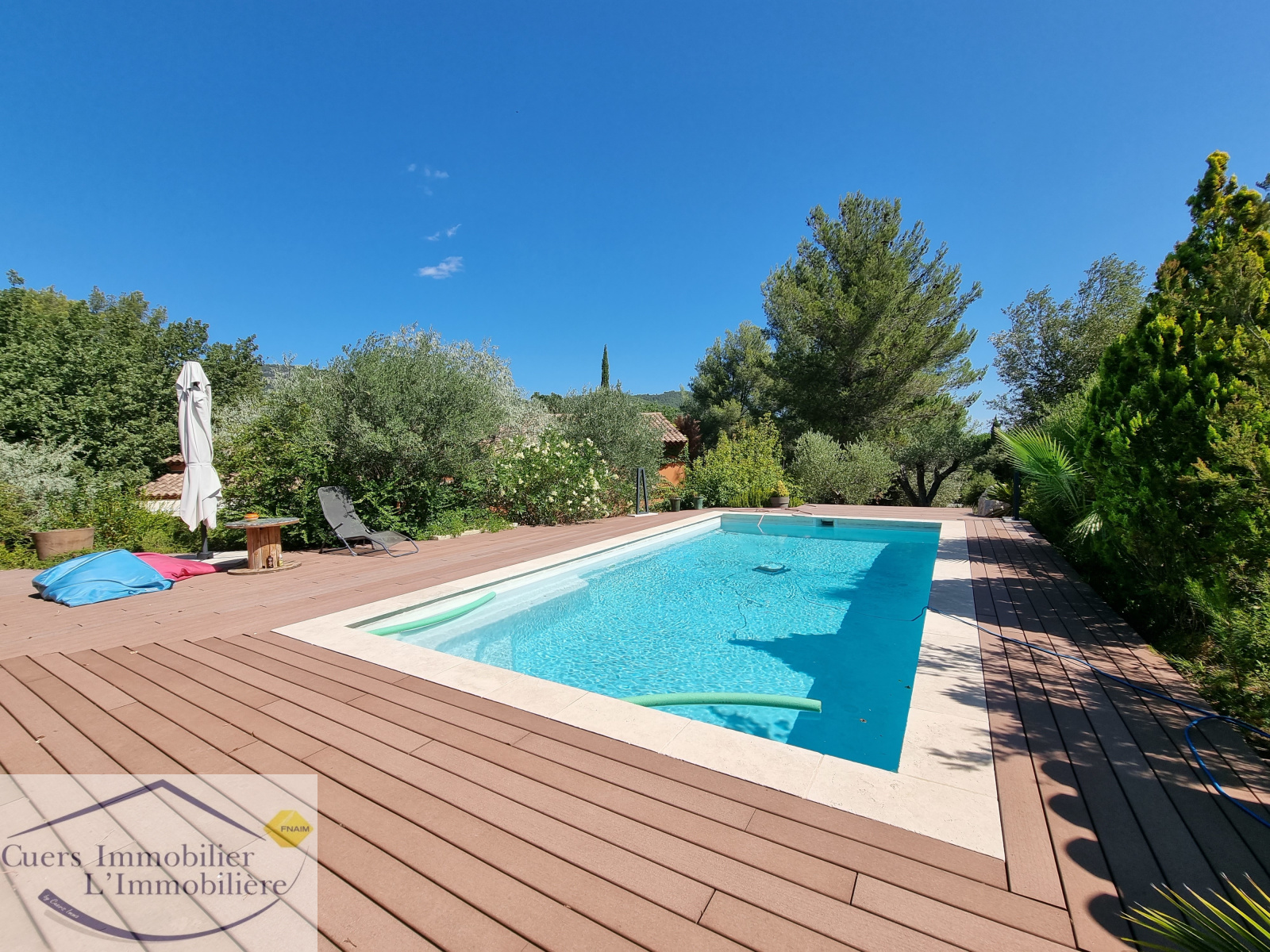 L'espace extérieur d'environ 2 500 m² a été aménagé au fil des restanques, vous apprécierez un espace piscine (au sel), des espaces de détente ombragés dans un environnement verdoyant.