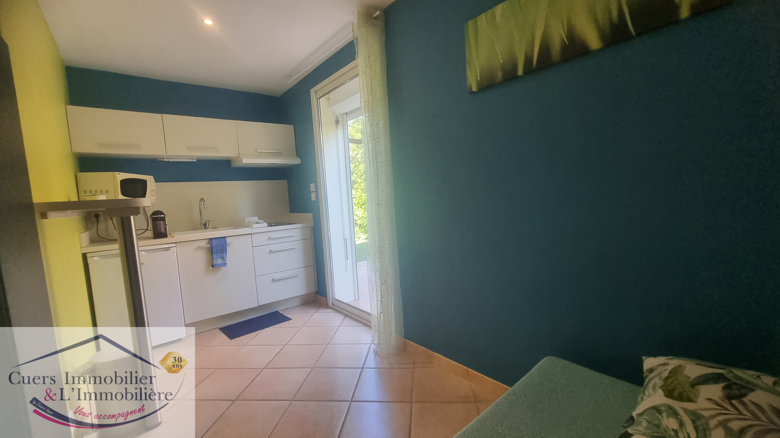 Au rez-de-chaussée : Une entrée dessert un salon/séjour avec cuisine ouverte aménagée et équipée, face au jardin, une chambre attenante de plain-pied, avec cloison amovible. Un dégagement dessert une SDE avec WC, un studio avec une cuisine aménagée et équipée, une SDE avec WC.