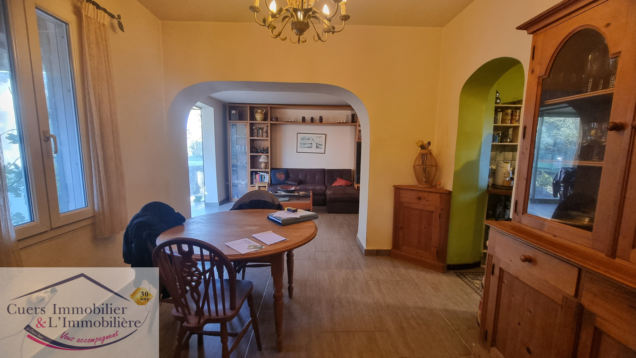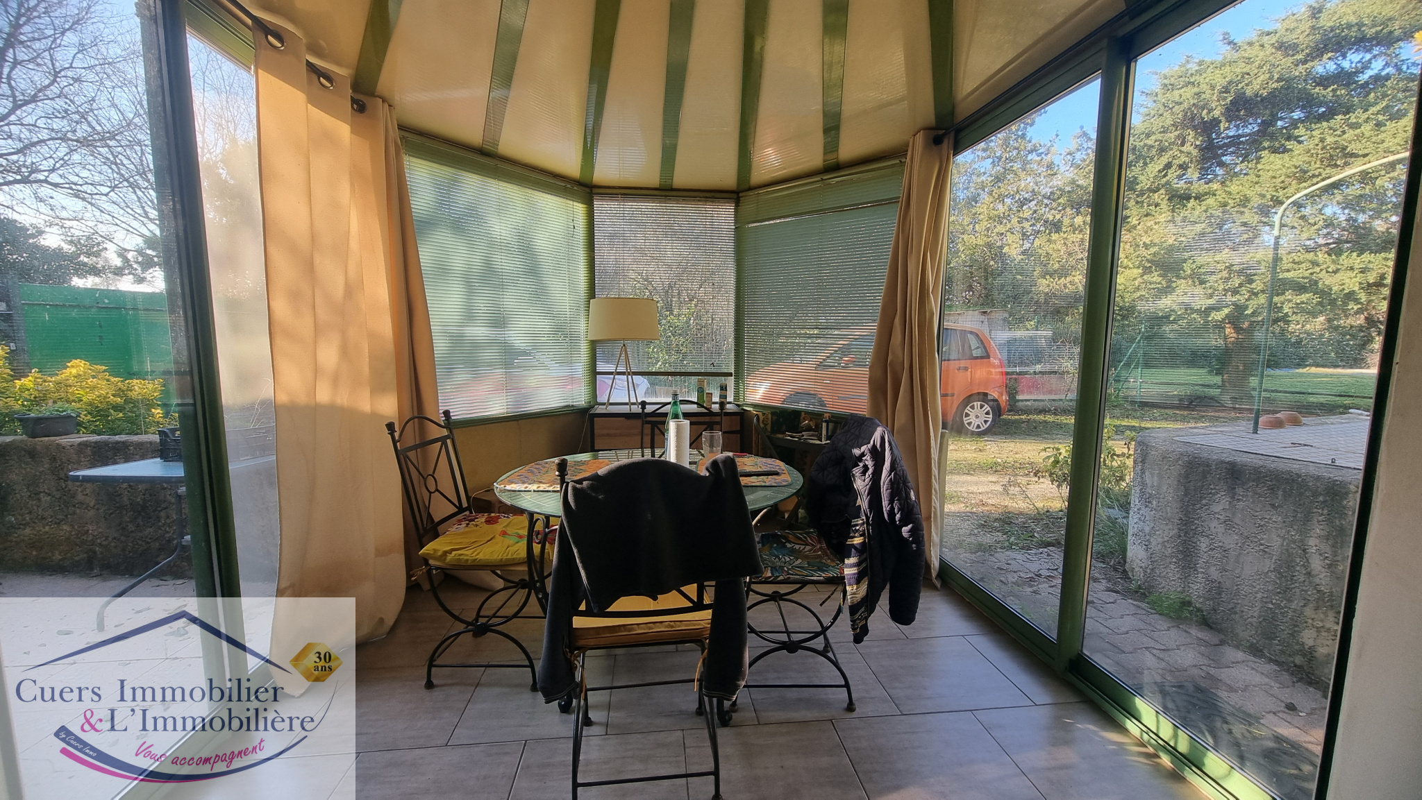 De plain-pied, le bien se compose d'une entrée donnant sur un salon/séjour d'environ 29m² prolongé par une petite véranda, une cuisine séparée aménagée, une cellier/buanderie. Un couloir dessert 3 chambres (10.8m², 10m², 13.20m²), une SDB et un WC.