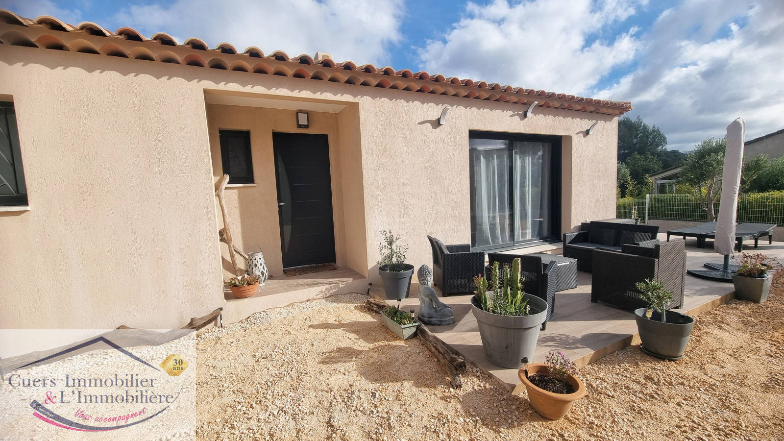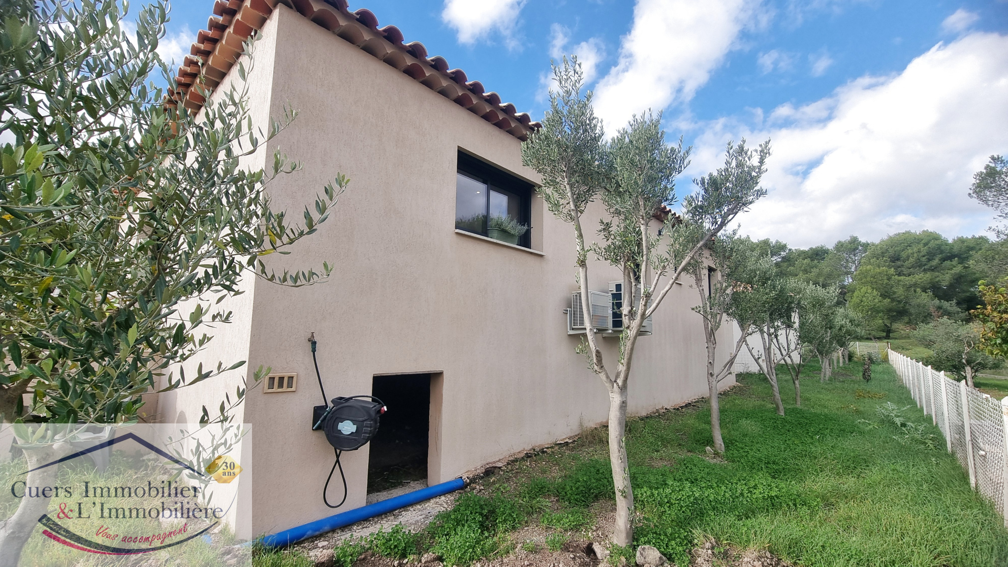 Côté extérieur, une grande terrasse d'environ 38m², un jardin planté d'oliviers, une zone idéale pour positionner votre piscine.