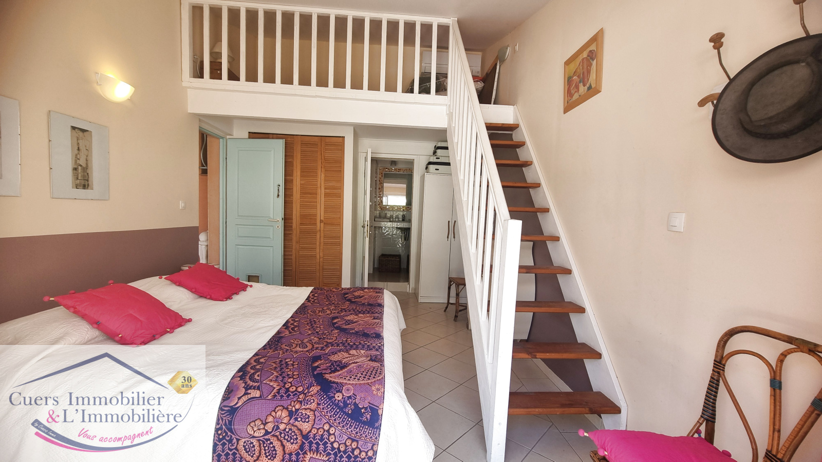 Jouxtant l'entrée, une dépendance complémentaire d'environ 20 m² aménagée en chambre avec sa sde privative + un espace en mezzanine d'environ 6m² .