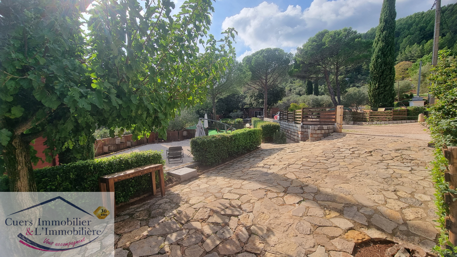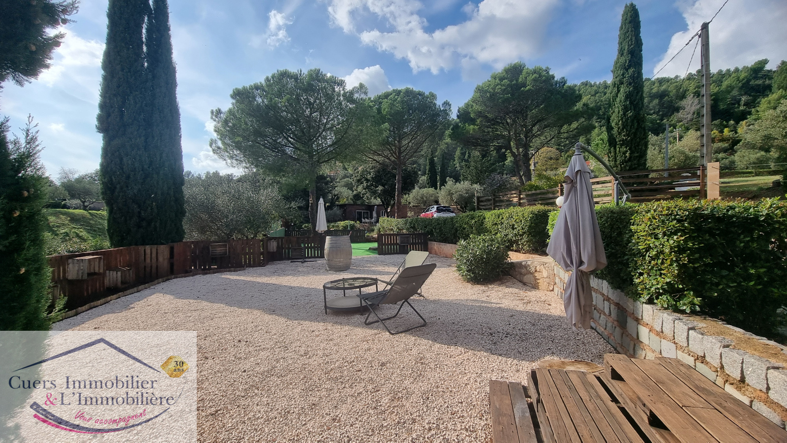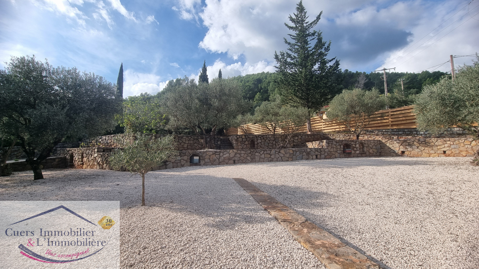 Côté espace extérieur, vous pourrez doner libre cours à divers projets grâce à un vaste terrain impécablement entretenu, clôturé, arboré princialement d'oliviers, aménagé en différents espaces, des murets en pierres sèches, des terrasses, poulailiers...
