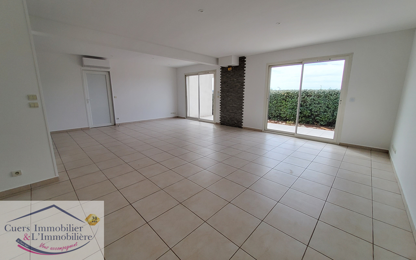 Menuiseries en PVC double vitrage, volets roulants électriques et climatisation réversible dans la piéce à vivre.