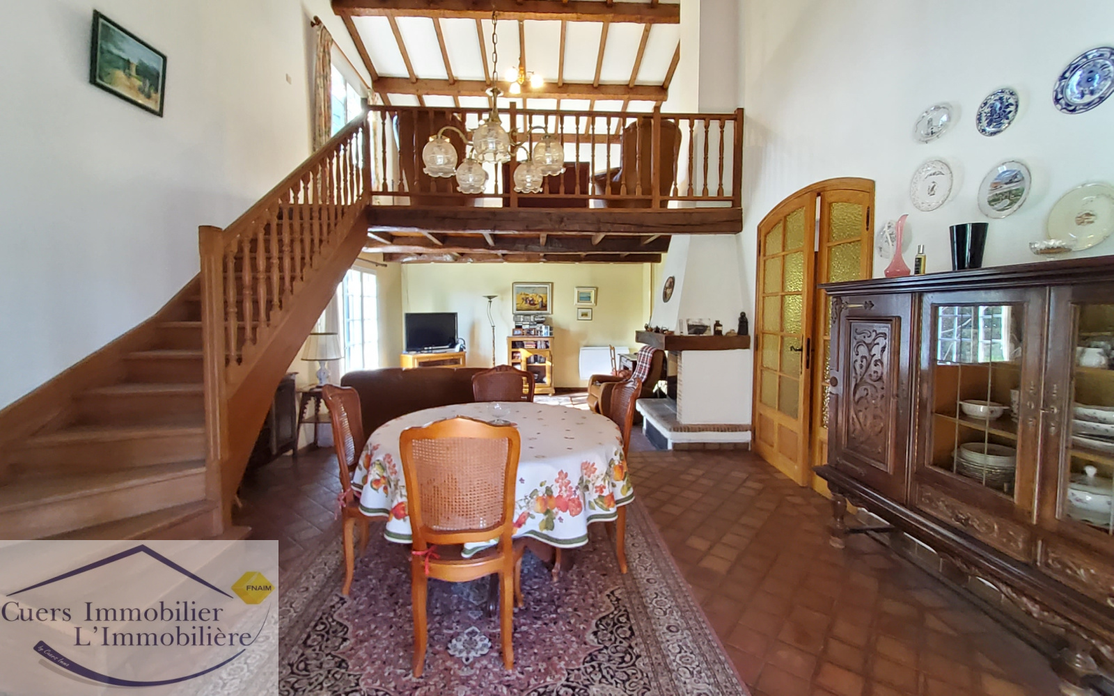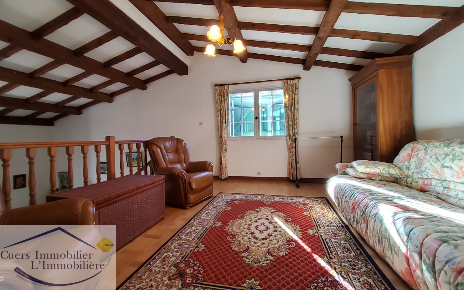 La maison est composée en rez de chaussée d'un hall d'entrée, une cuisine, un salon séjour avec cheminée foyer fermé donnant sur une véranda d'environ 26m2. Un dégagement dessert deux chambres avec placard et une grande salle de bains avec wc. A l'étage une mezzanine de 18m2 et un grenier.