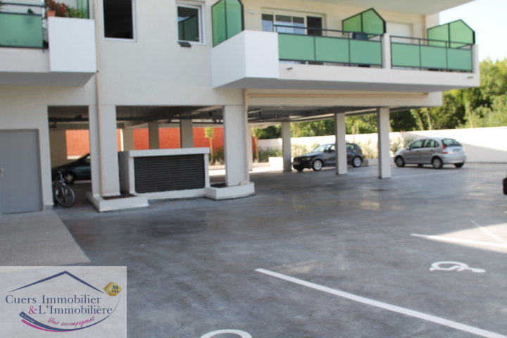 Une terrasse côté jardin de la copropriété, au calme, d'environ 8.20 m², un garage à vélo commun et une place de stationnement privative.