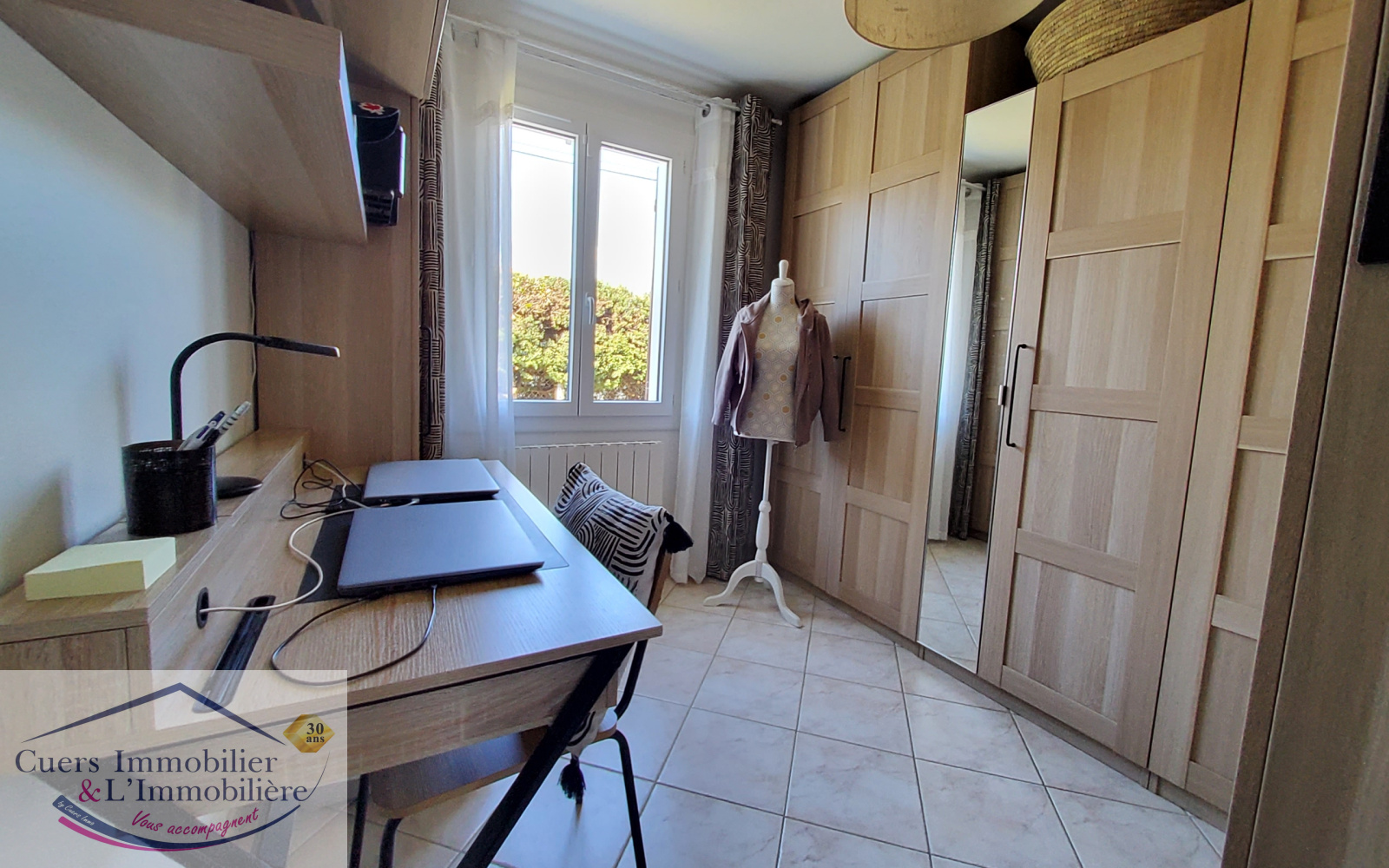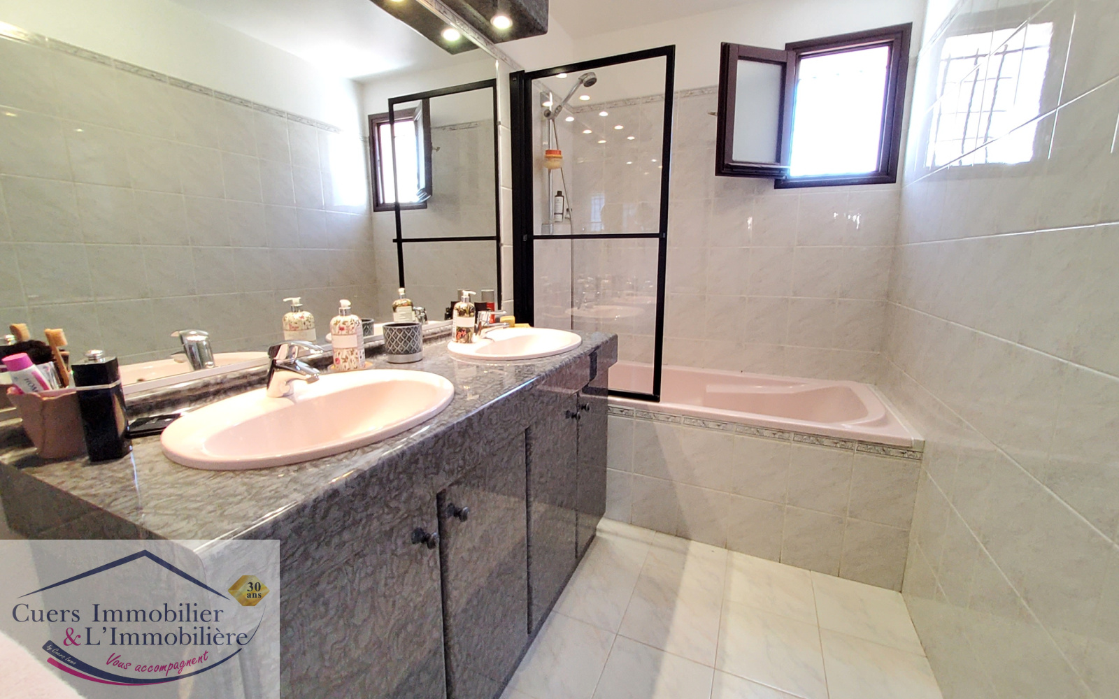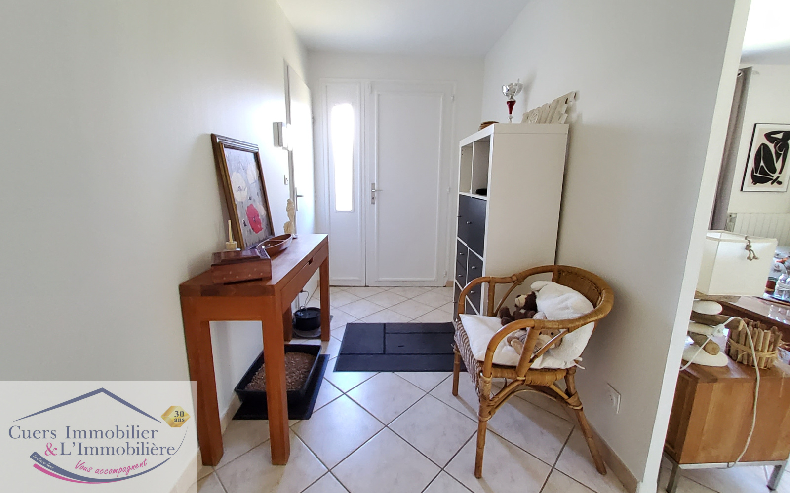 Dès l’entrée, vous apprécierez le placard intégré, le vaste salon-séjour lumineux, la cuisine aménagée, le cellier et un dégagement menant à trois chambres dont une avec grande penderie et une autre équipée d'un dressing récent, une salle de bains et des toilettes séparées.