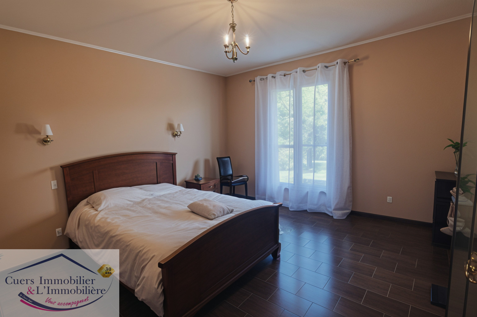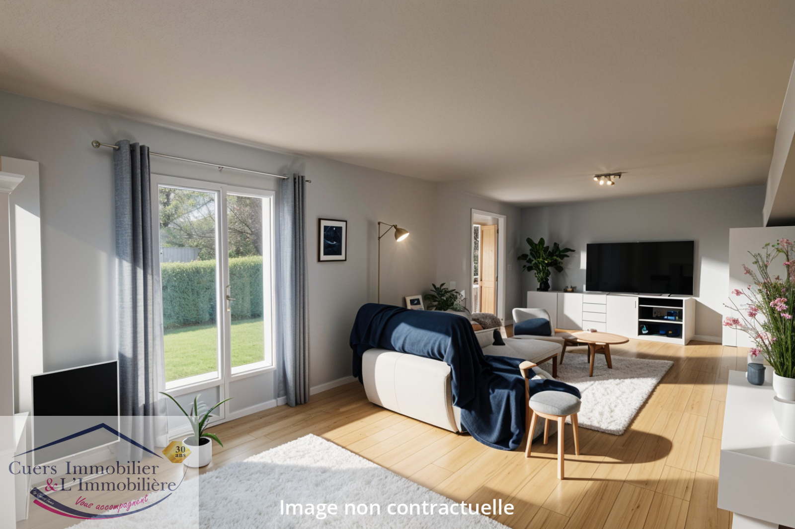 Côté extérieur, un grand jardin plat, clôturé et arboré, qui vous permettra de profiter des moments de détente en famille, dans un environnement verdoyant.