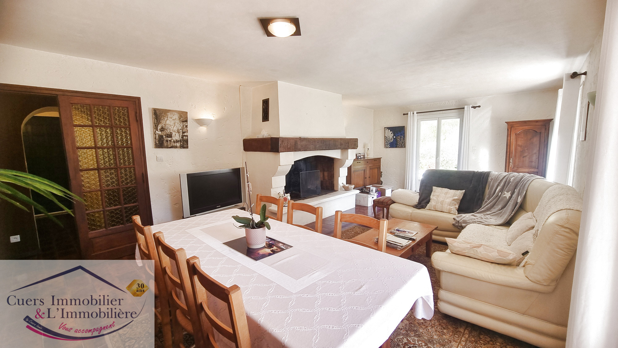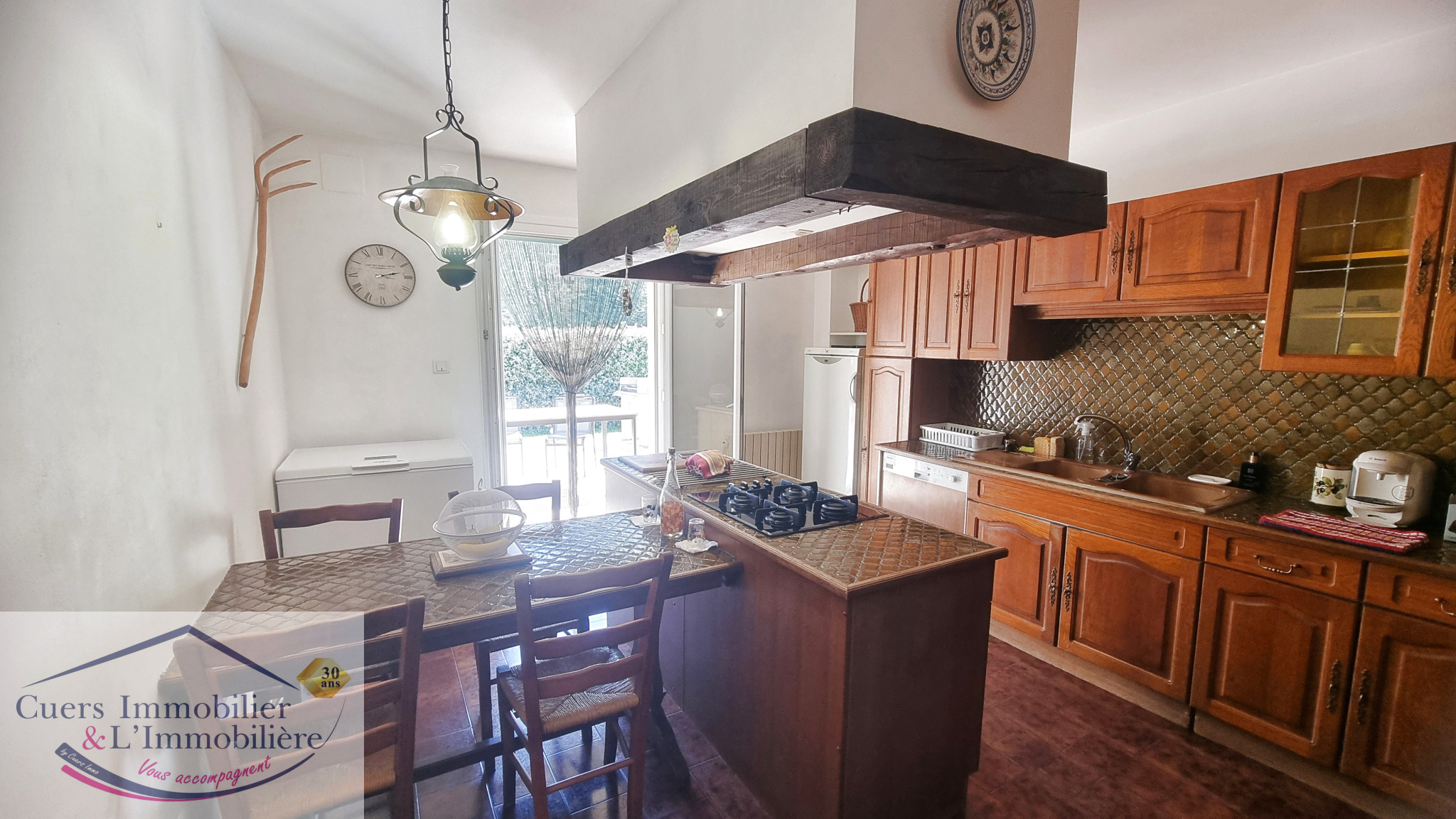 Beaucoup d'atouts positifs pour cette maison qui se compose d'un hall d'entrée, un salon/séjour d'environ 37m² bénéficiant d'une belle exposition Sud-Est, adossé à une cuisine aménagée et équipée prolongée par une terrasse.