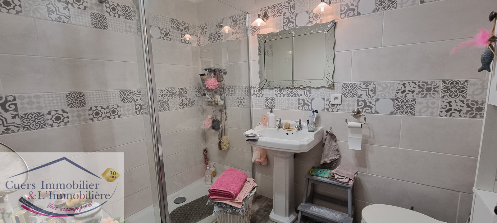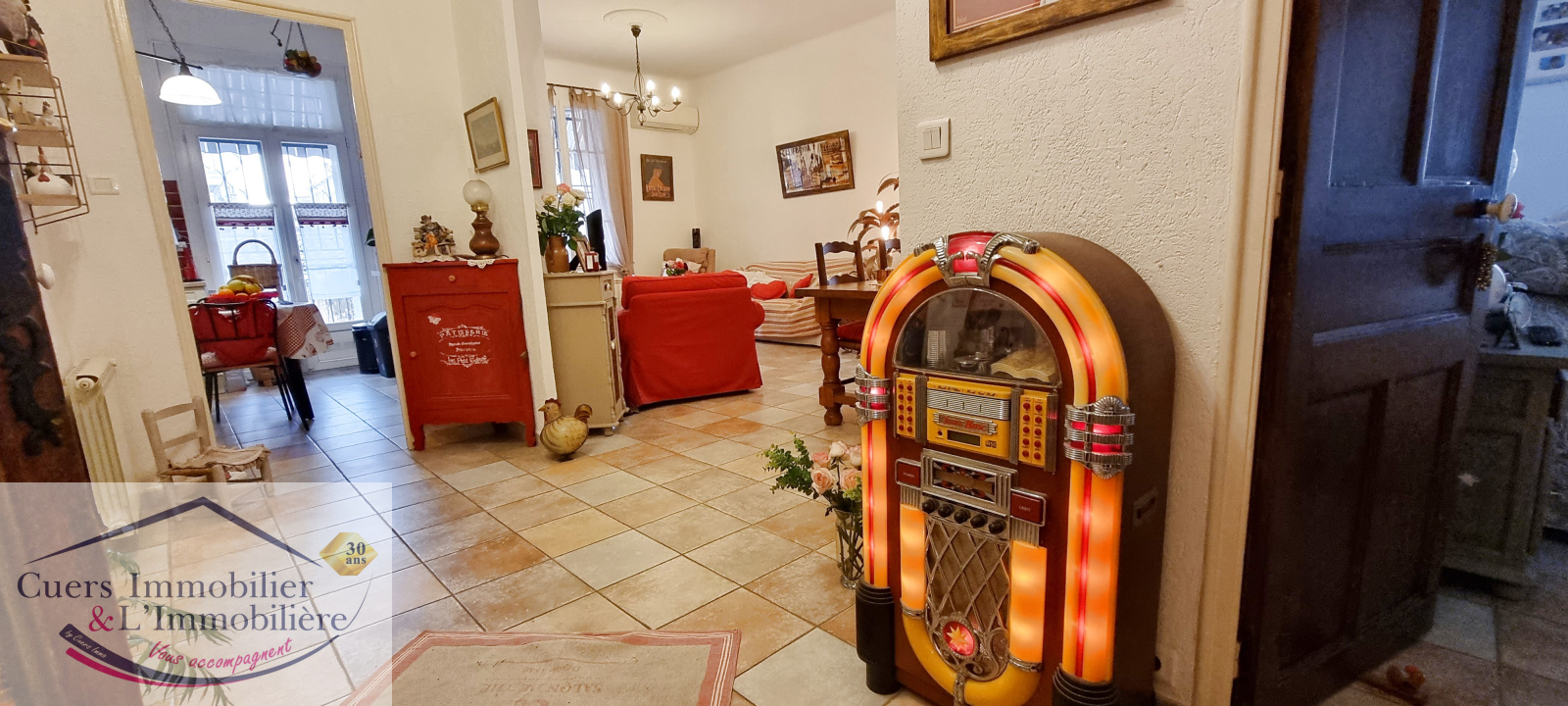Elle est actuellement configurée en 2 appartements aménagés avec soins et reliés par un escalier.