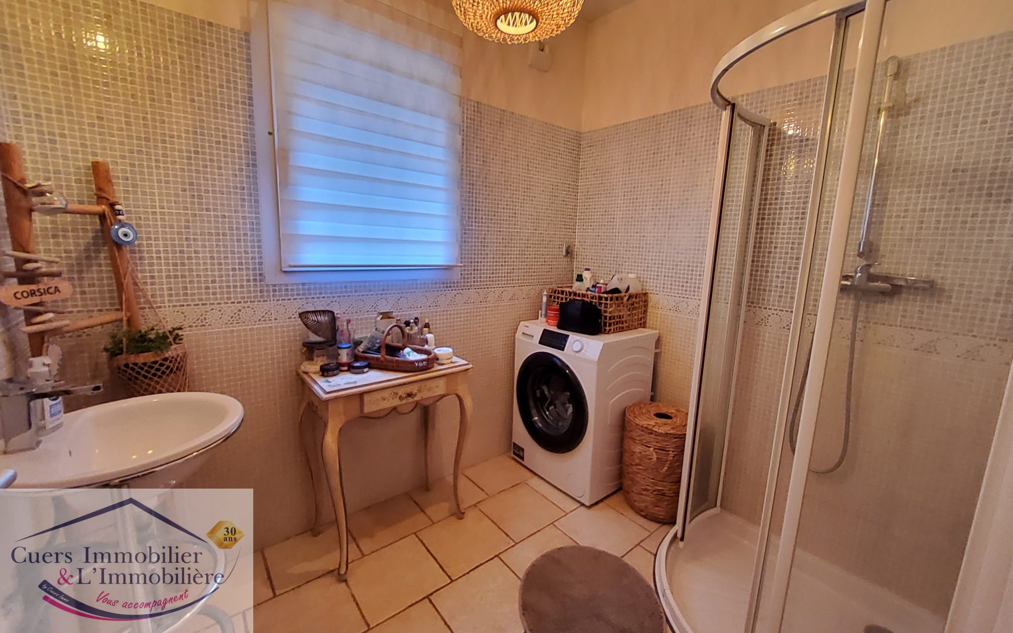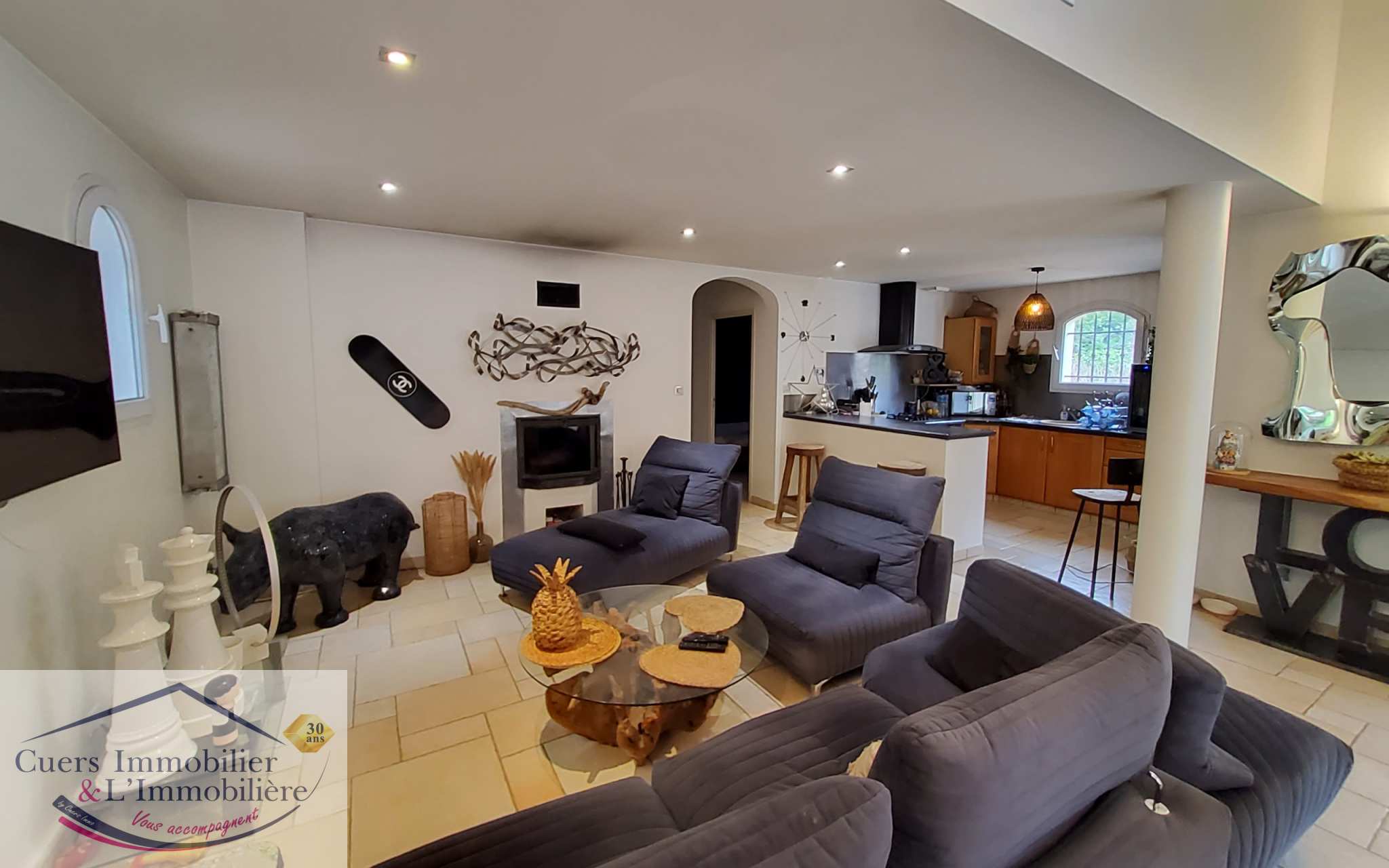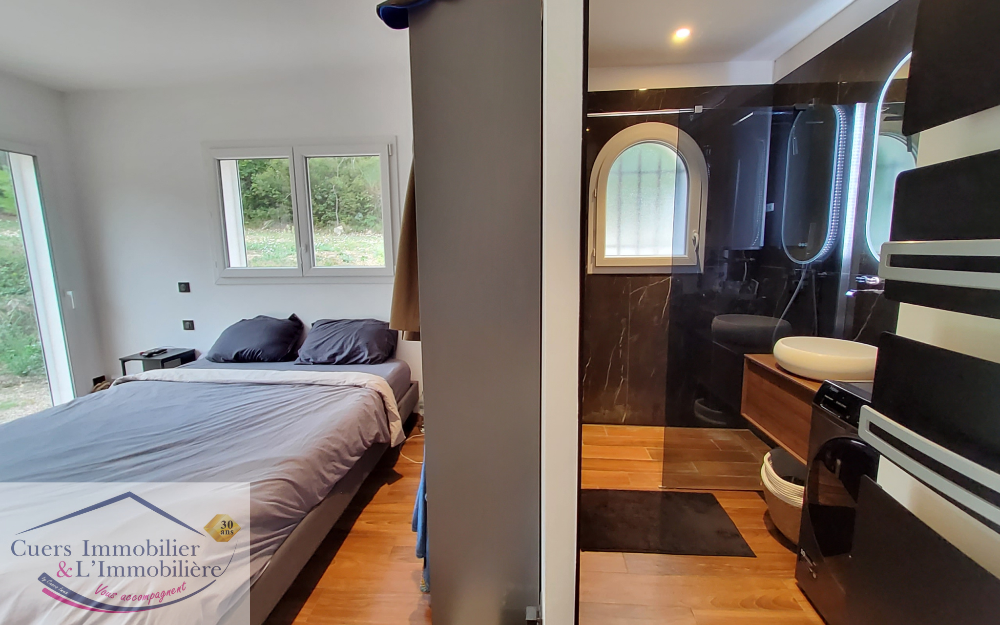 - un second logement de type 2 d'environ 60m², attenant à la villa principale comprenant un salon avec cheminée, une cuisine ouverte, un dégagement, une chambre et une salle de bains.