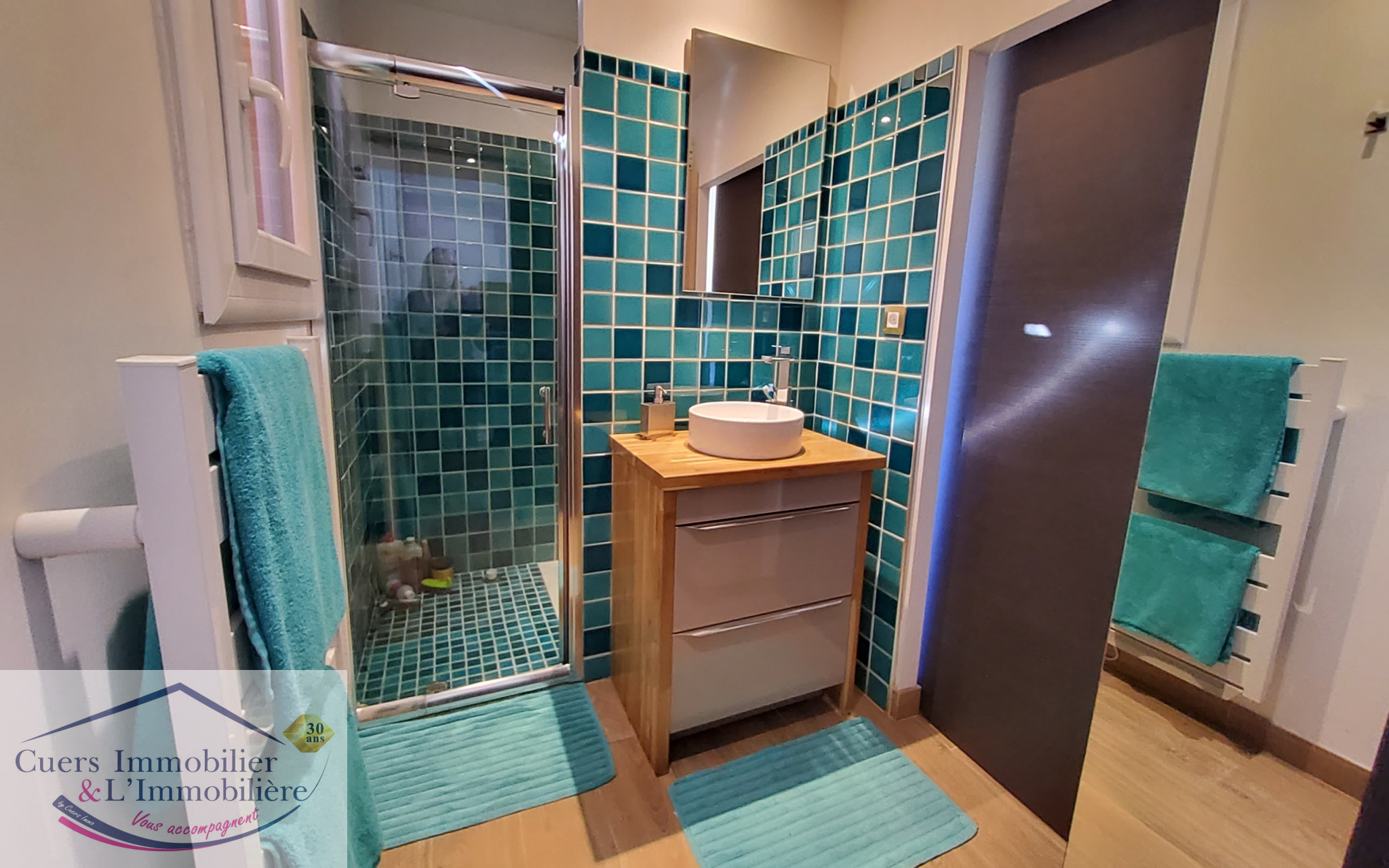 À l’étage, la suite parentale offre une chambre, un bureau/dressing, et une salle d’eau avec wc.
