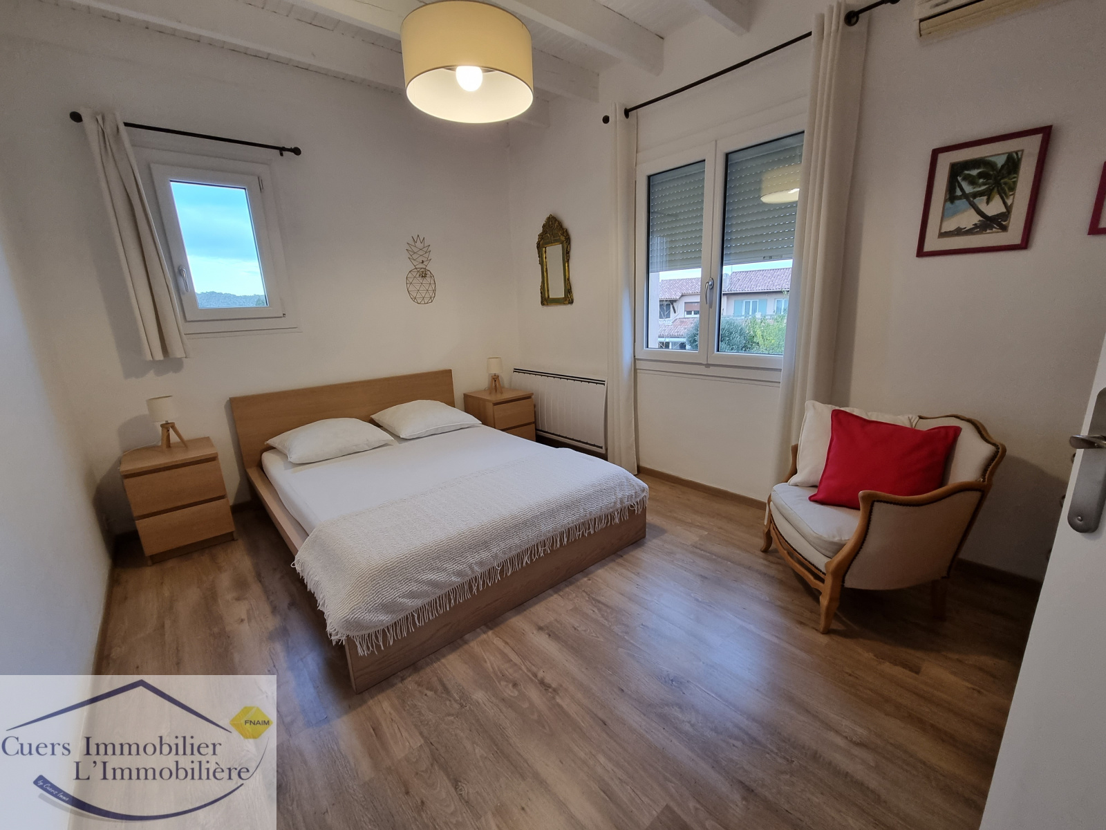 A l'étage, deux chambres cocooning dont une avec dressing, un wc et un solarium.