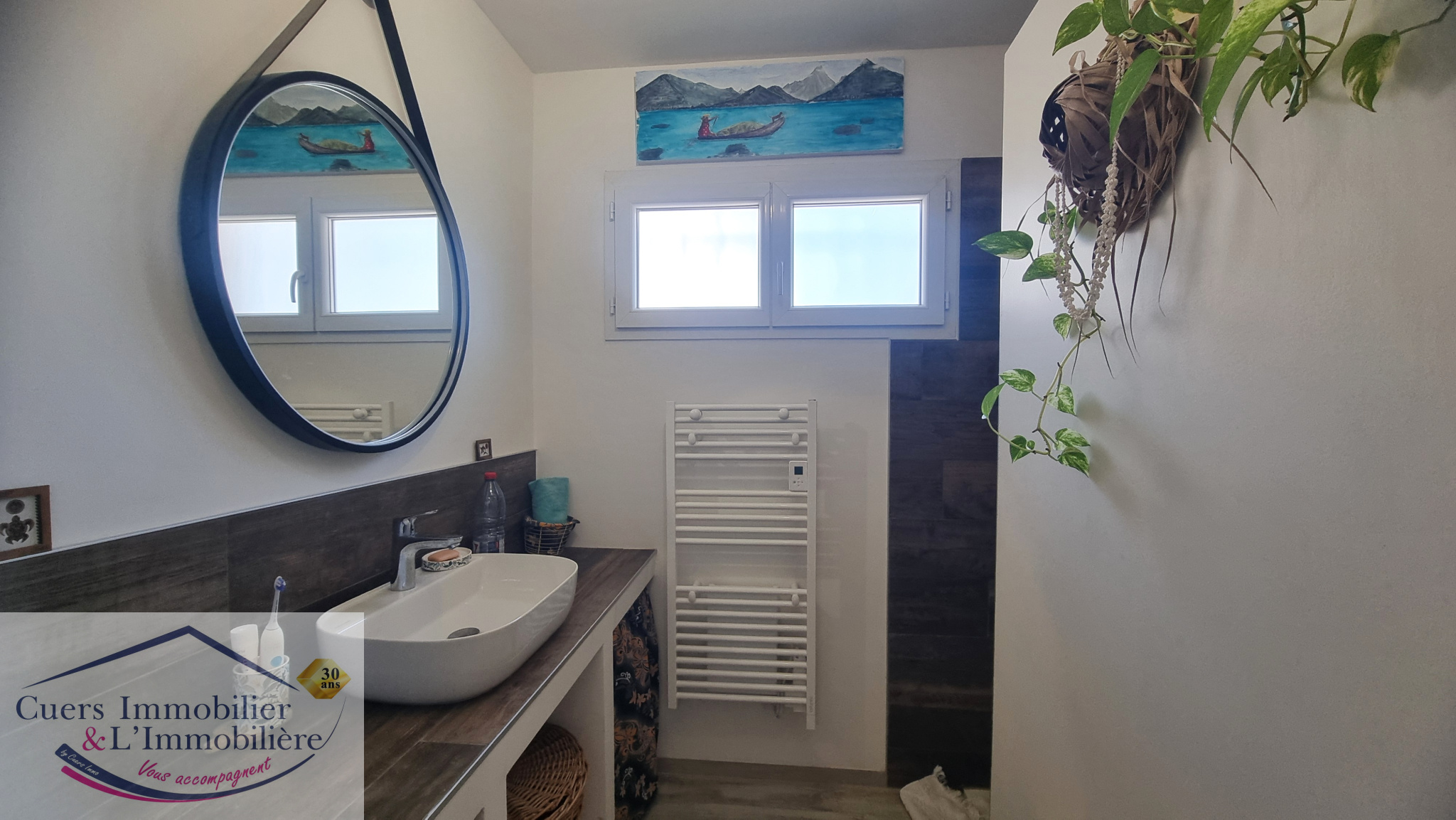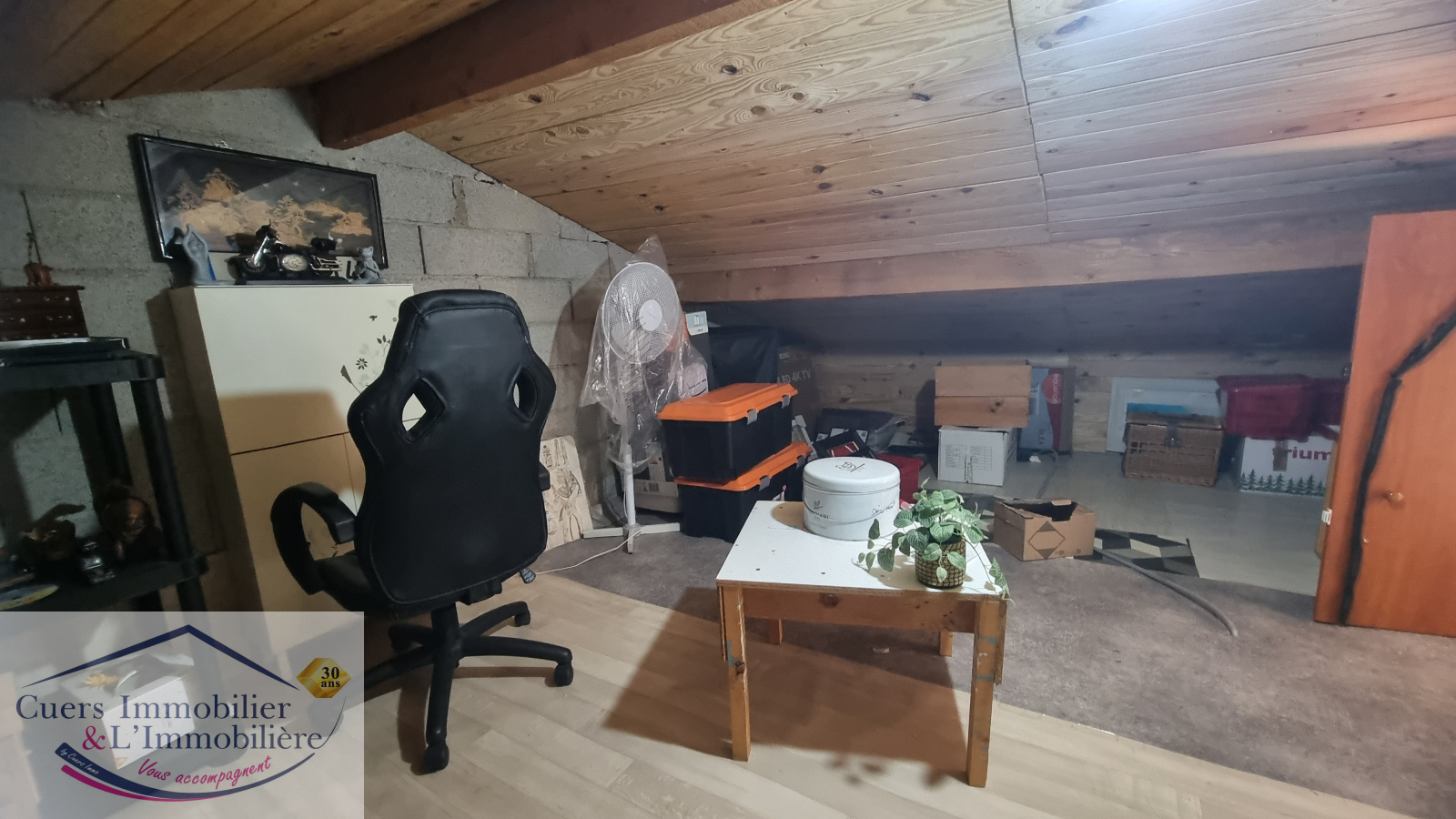 Formidable atout, un grand garage de 43m², communiquant avec la maison entièrement carrelé, complété par une cave.