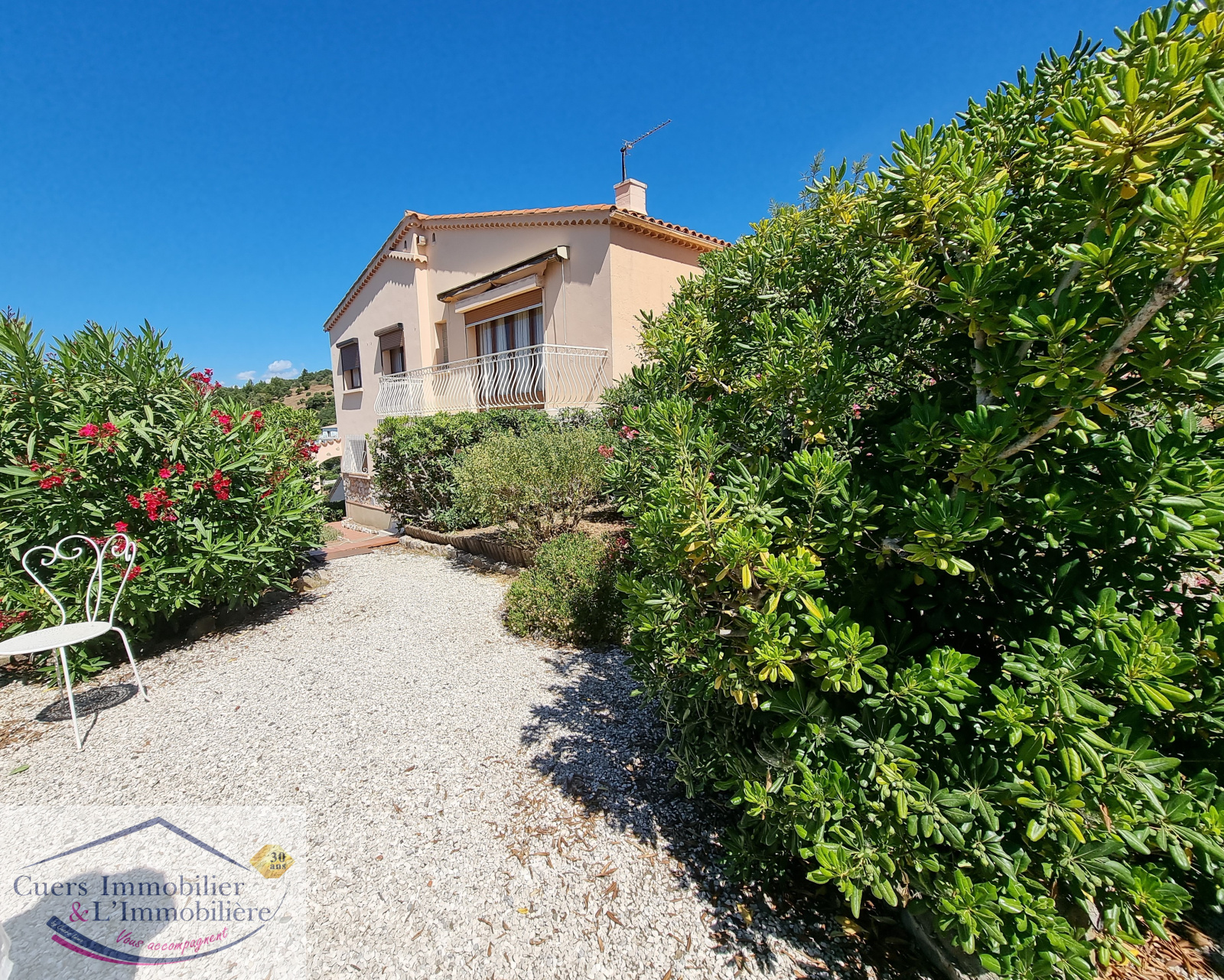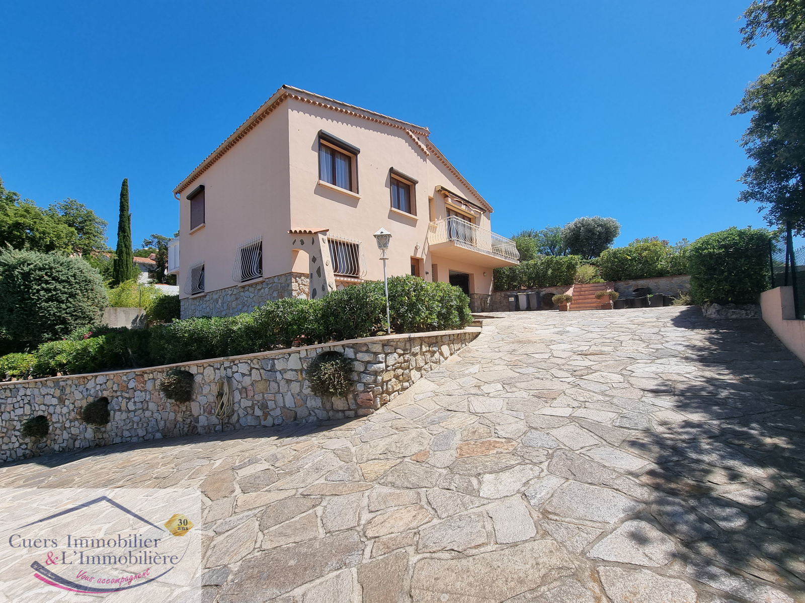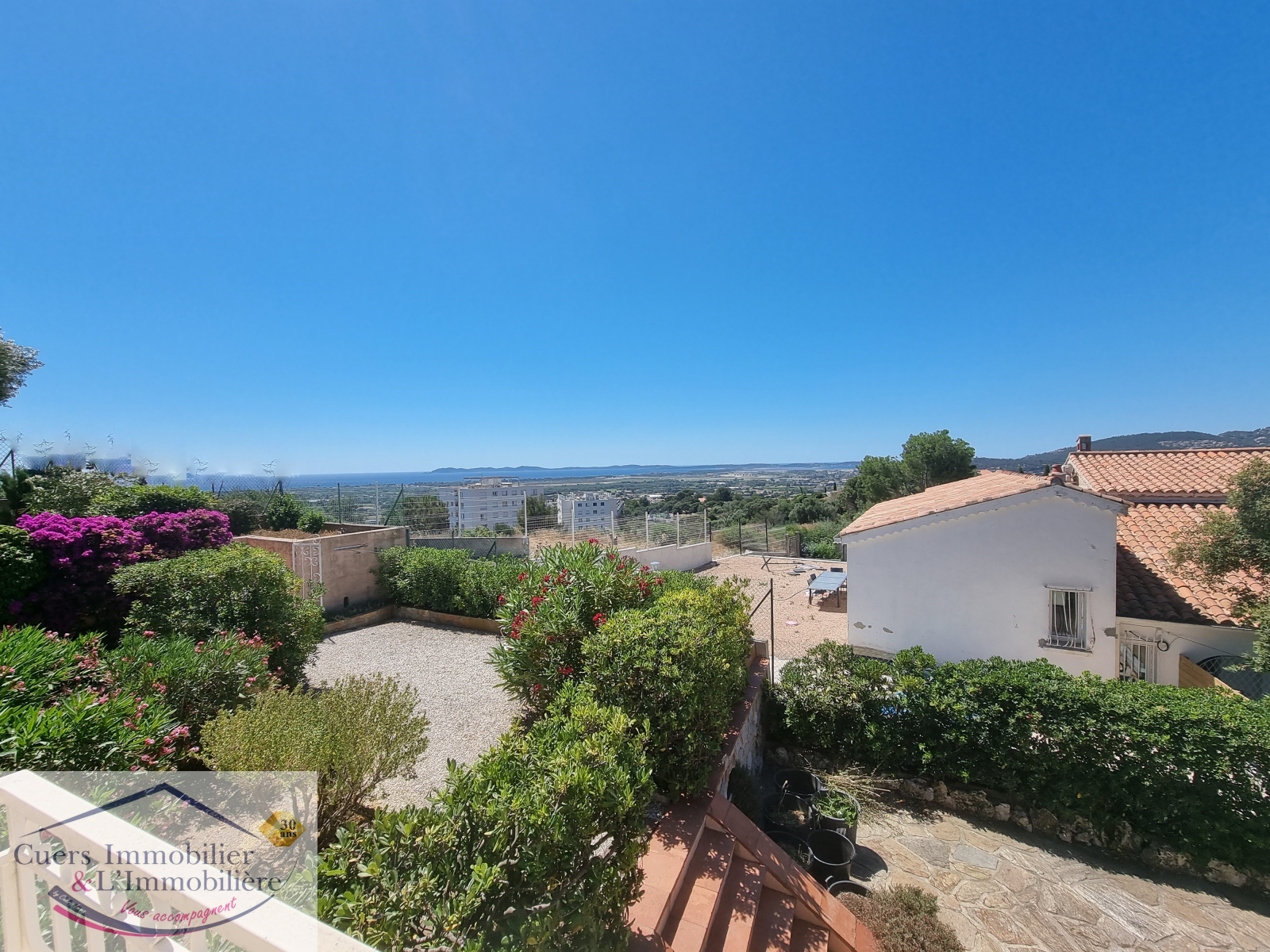 Hyères (83400)HYERES, secteur Mont Soleil, offrant une vue dominante sur les collines, la mer et les îles d'or, villa familliale composée de deux logements : un T4 + un T2 communiquant par une entrée commune.