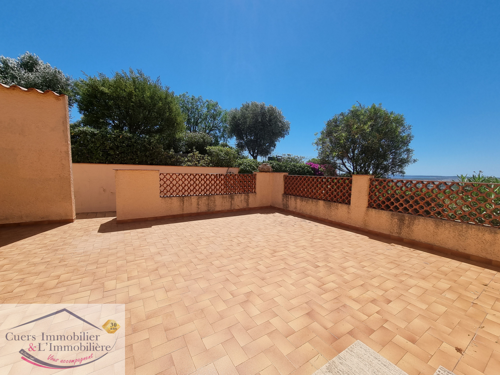 Vous apprécirez une vaste terrasse d'environ 40 m², accessible depuis le séjour, avec vue mer.