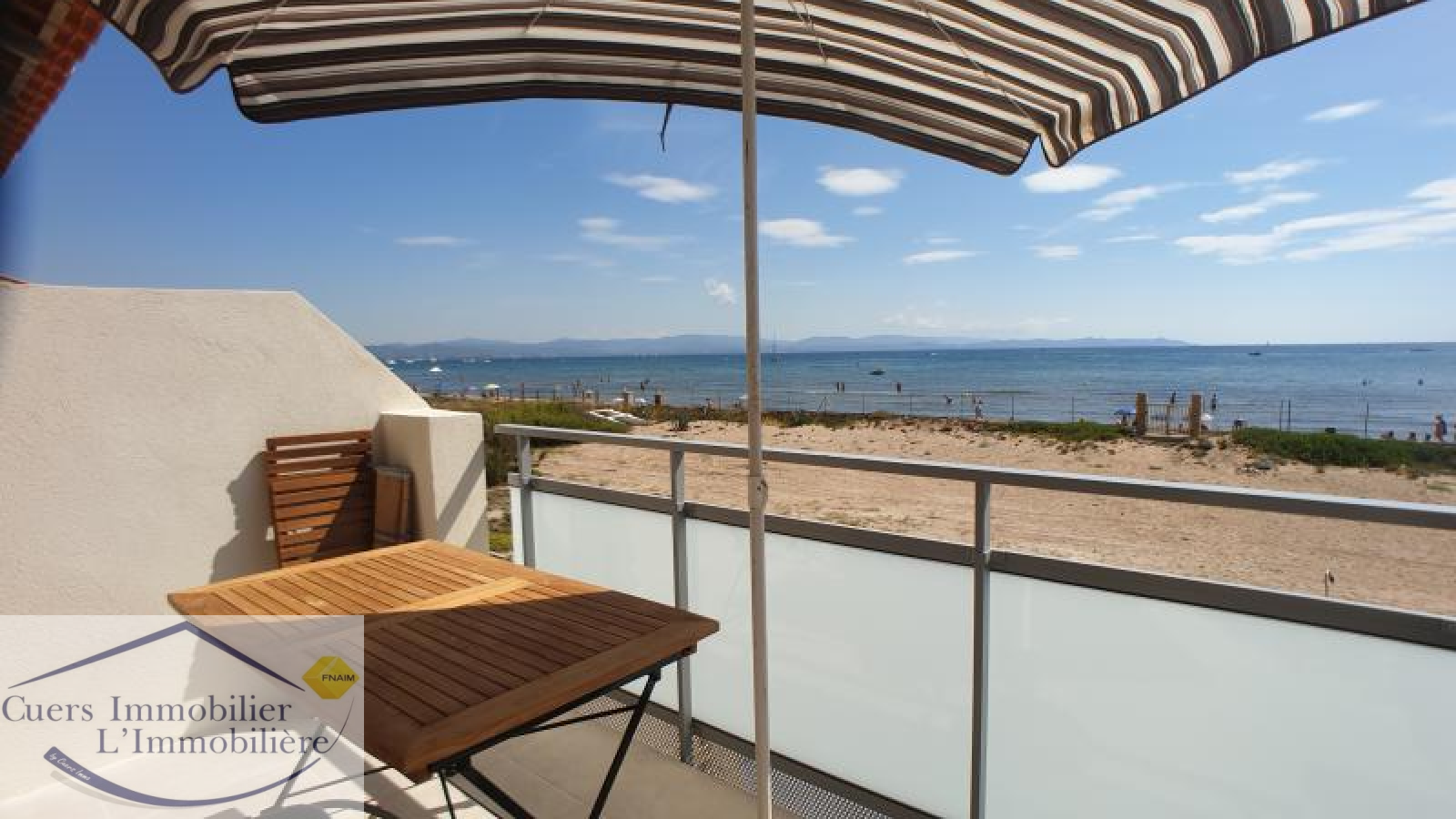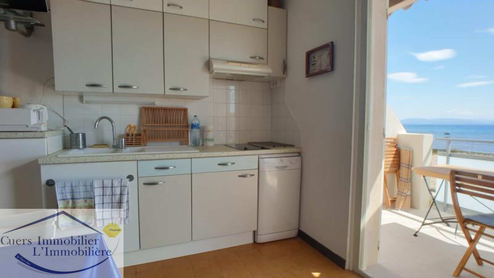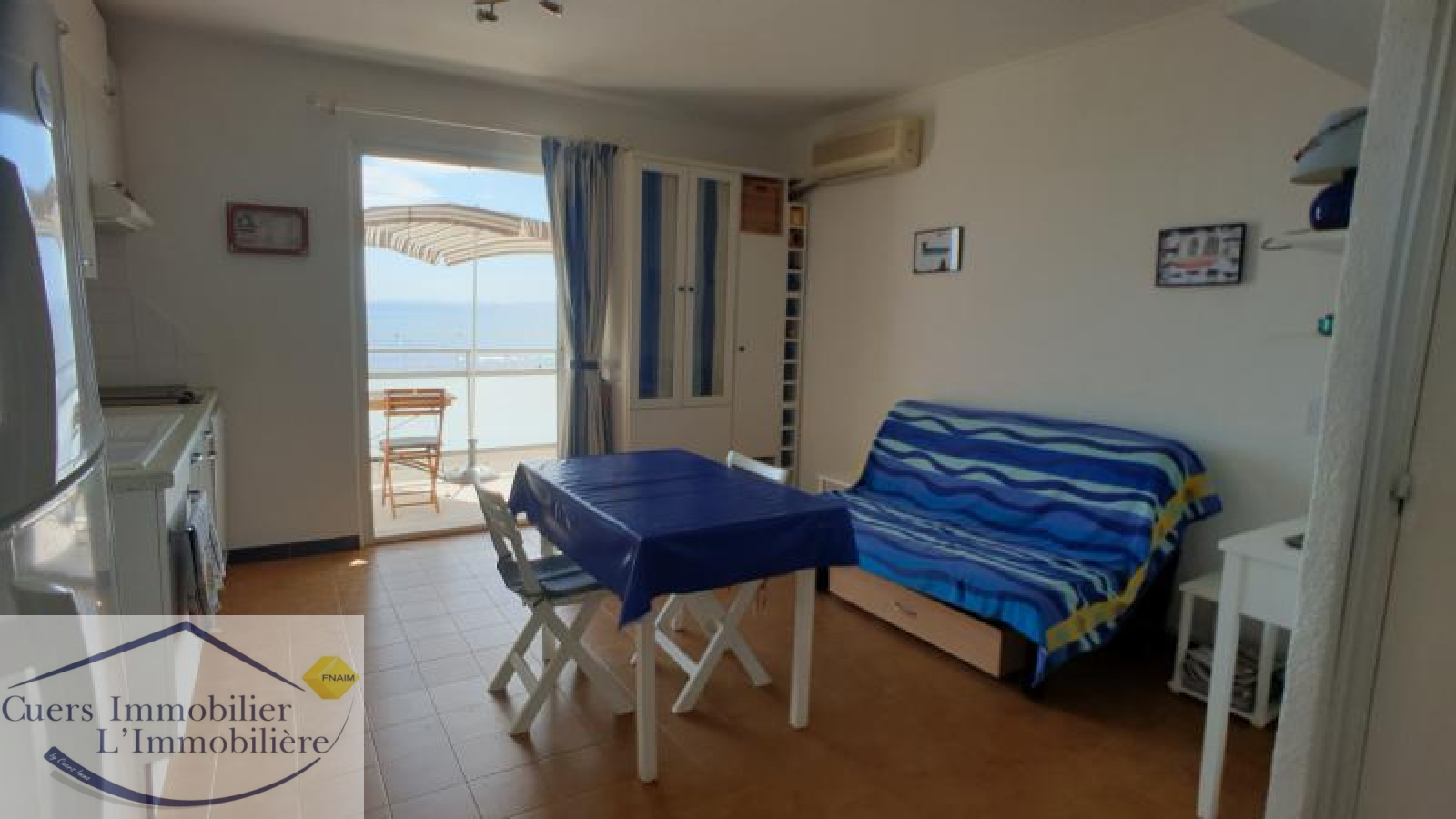 Venez découvrir ce ravissant studio de 20,15 m² avec terrasse, en 1ère ligne face à la mer, accès direct à la plage de sable fin par le jardin de la résidence.